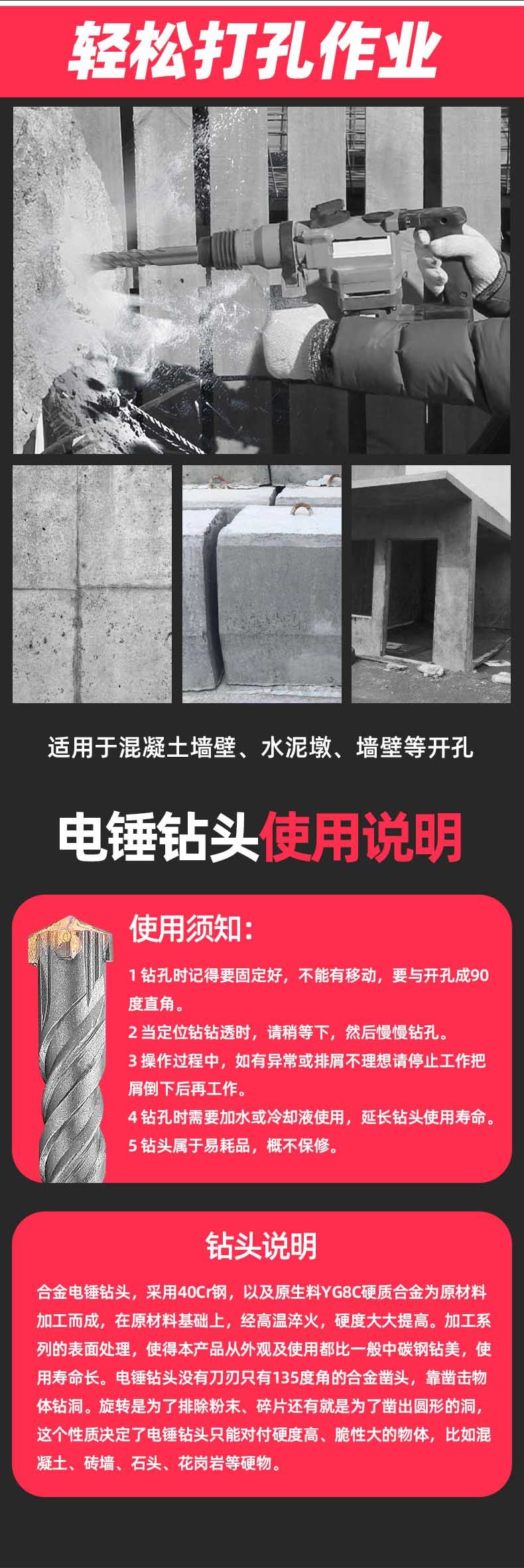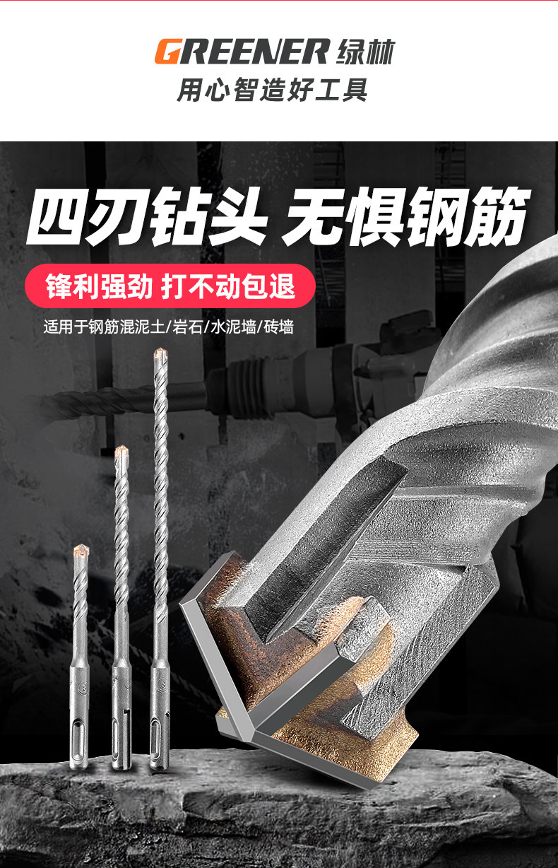 Зеленая лесная буровая головка круглая ручка с круглой ручкой бетонной электропробивание через стену, пересекающую стену, и удлиняют четыре ямы, чтобы развернуться