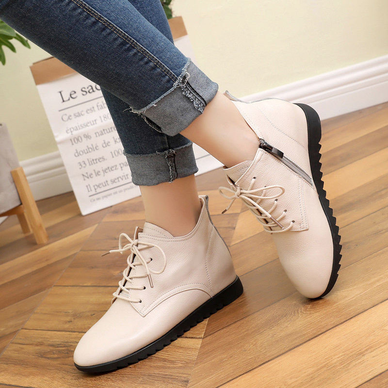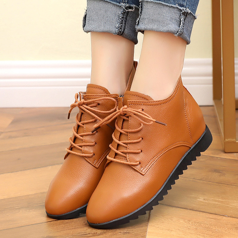 Martens, весенние короткие сапоги для матери, флисовые ботинки, из натуральной кожи, мягкая подошва