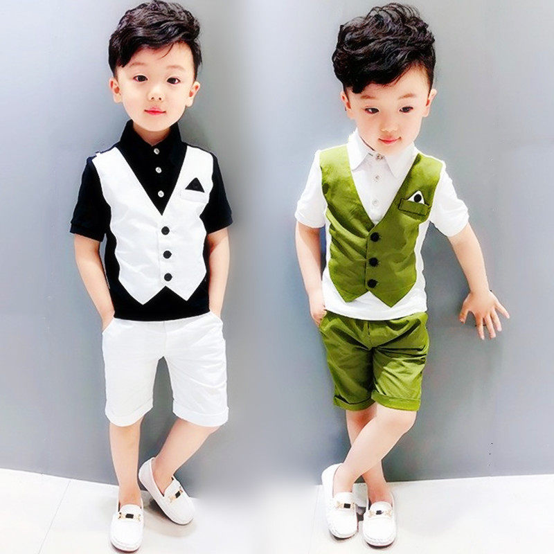 Летняя детская летняя одежда, жилет для мальчиков, рубашка, комплект, платье