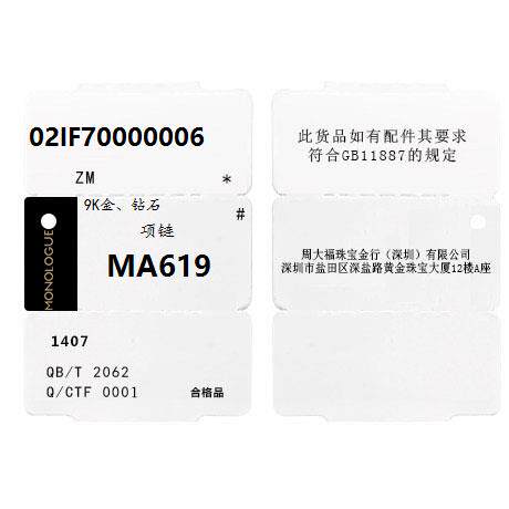 周大福 Монологический монолог микс мода 9k золотой бриллиантовый колье подвеска MA619 Подарок
