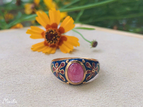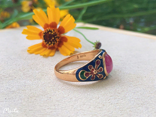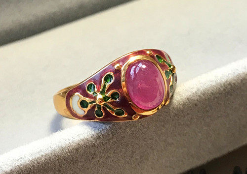 Кольцо 13# в наличии имеет тот же цвет фона красной эмали, что и на картинке ниже. Поверхность рубинового кольца более красная, а кольцо на картинке ниже более розовое (то, что на картинке, продано).