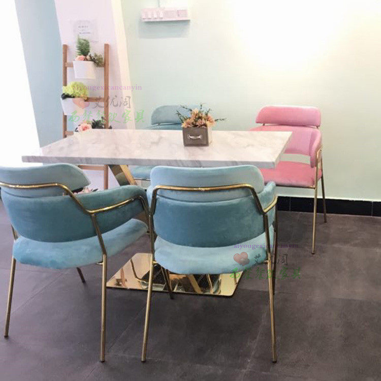 Интернет-знаменитости, мраморный квадратный стол, чай с молоком, десертный магазин, стол и стулья, комбинация стола и стула для кафе западной кухни, золотой обеденный стол и стулья