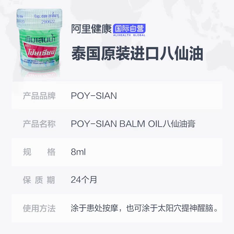 Таиланд импортированные бальзам-бальзам Poy-Sina головокружение и духовное, восемь укусов комаров бессмертного масла, тепловой удар 8 мл