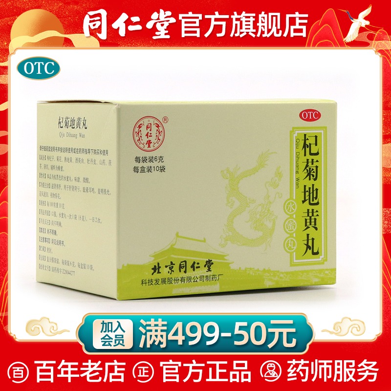 同仁堂 Официальный веб -сайт флагманского магазина Qi Ju Huang таблетки 6G*10 сумки почек инь, потеря печени, дефицит почек инь, шума в ушах, головокружение, головокружение,