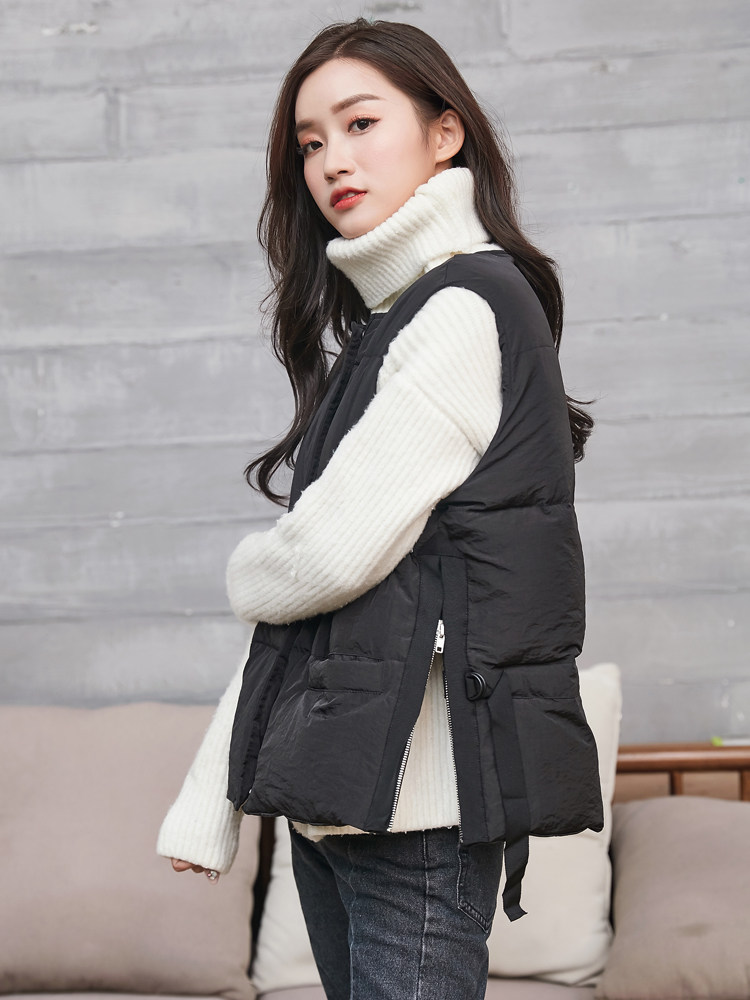 Черный короткий жилет с круглым воротником, корсет с пухом, оверсайз