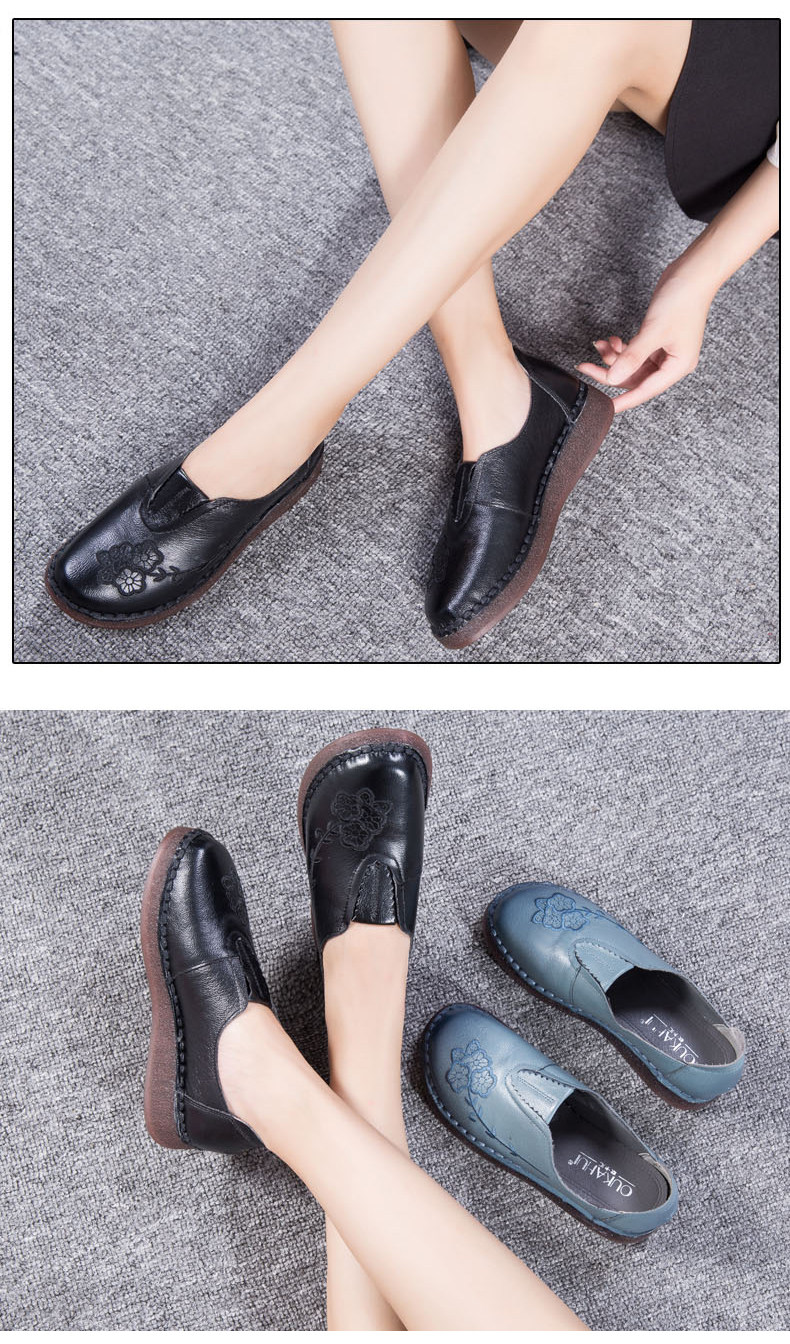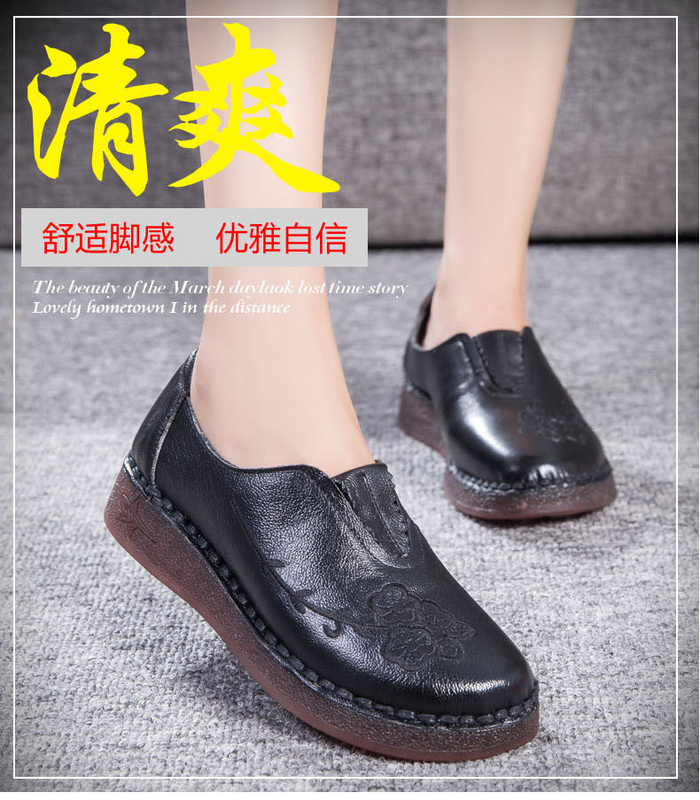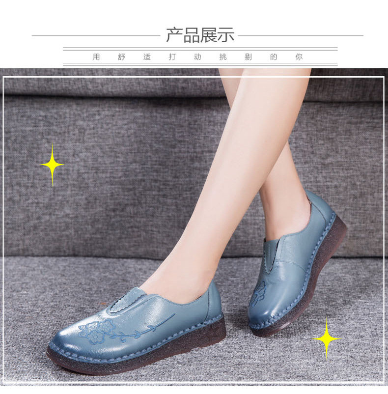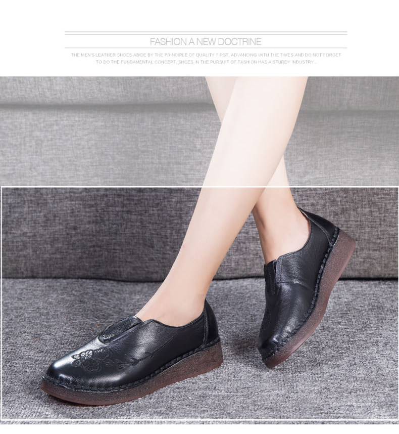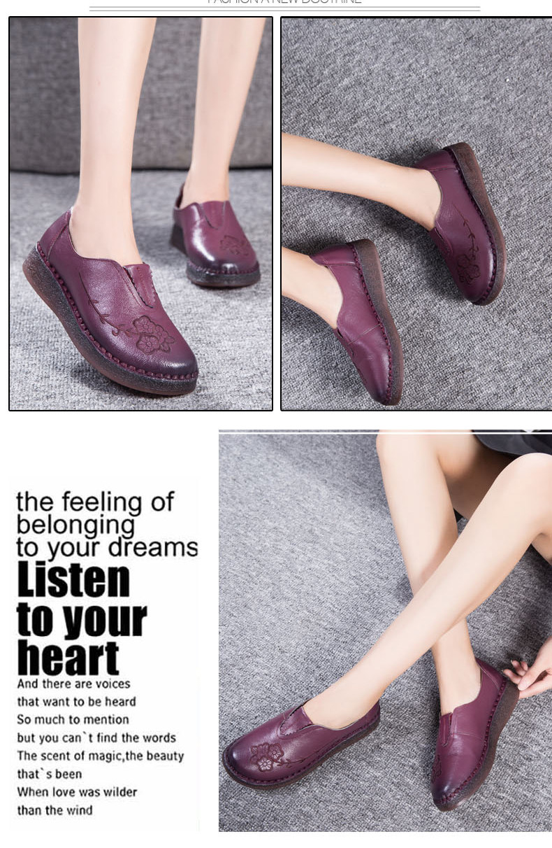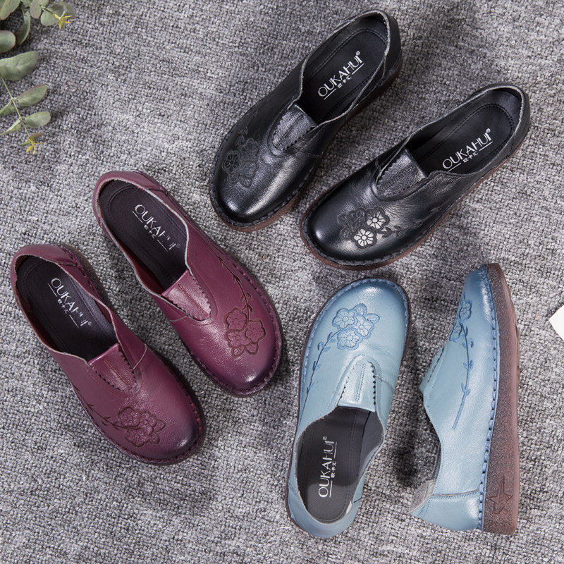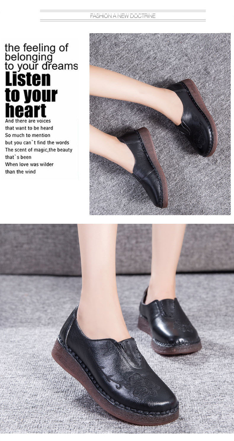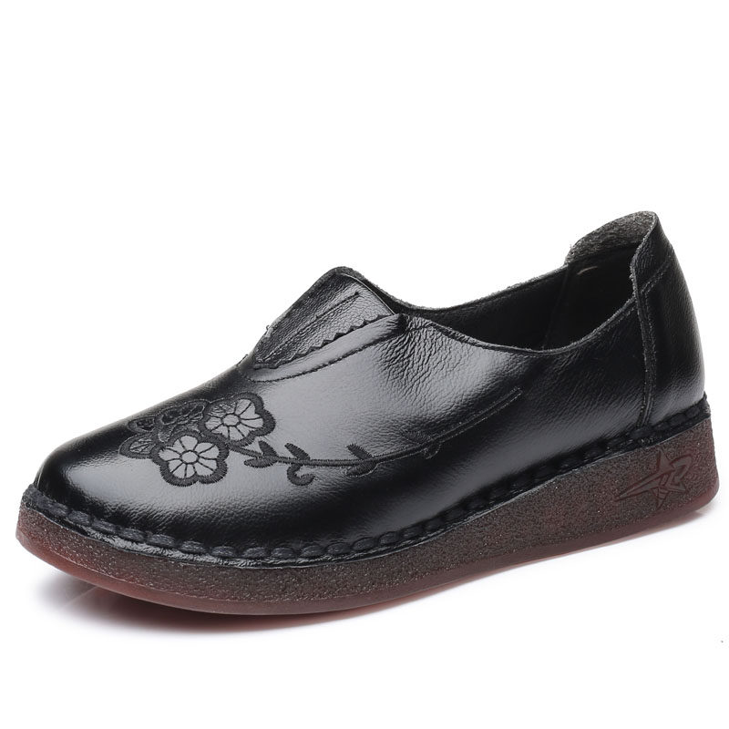 Женская обувь весенне-осеннего фасона с мягкой подошвой и мягкой поверхностью, удобная этническая женская обувь среднего и пожилого возраста, плоская подошва из натуральной кожи и сухожильная подошва для большой стопы.