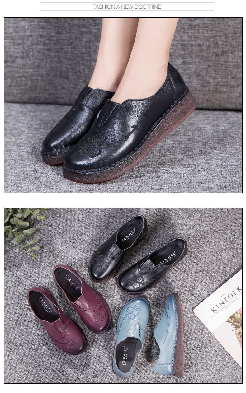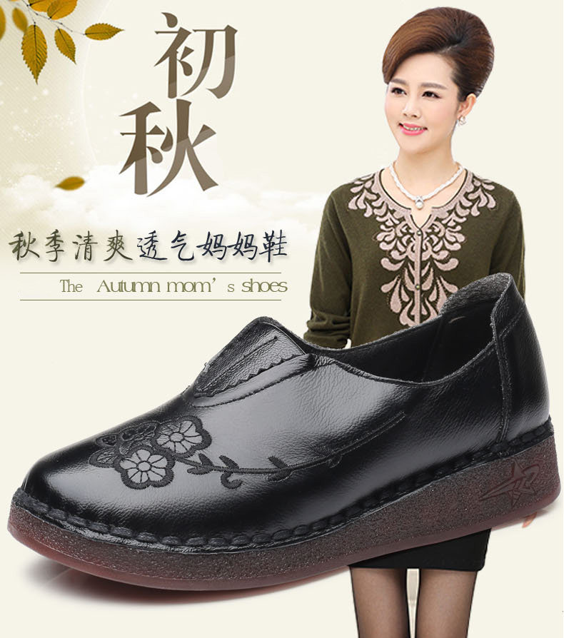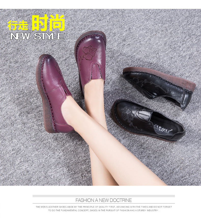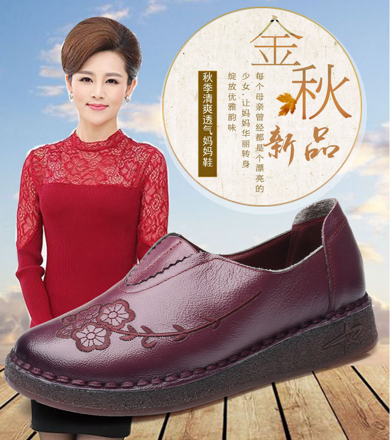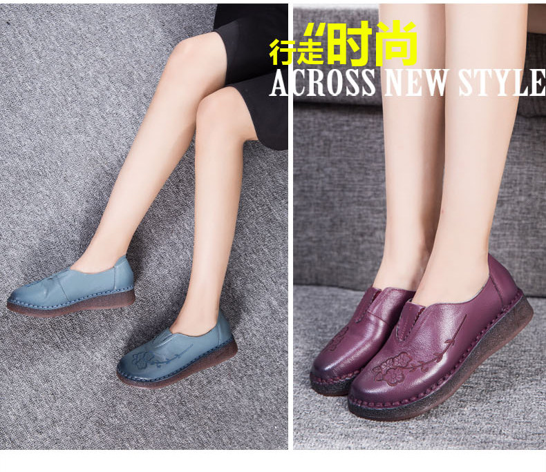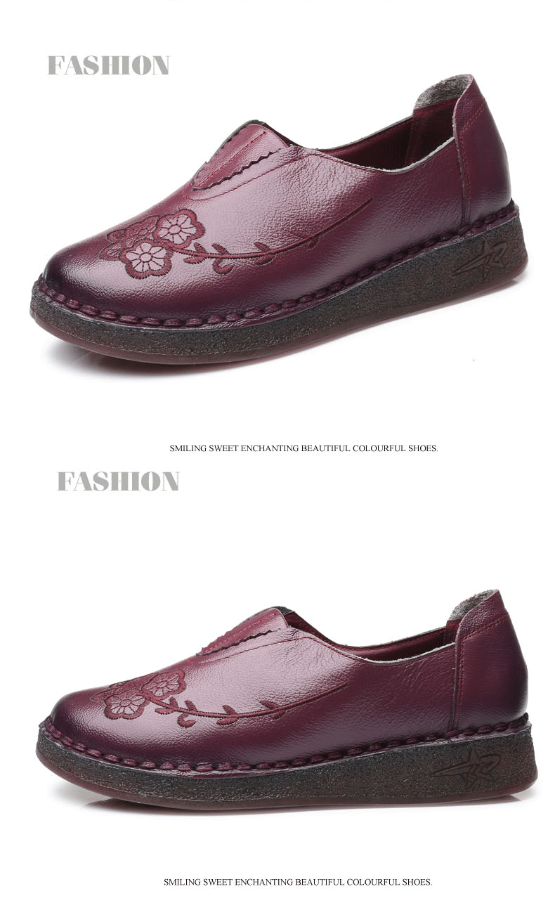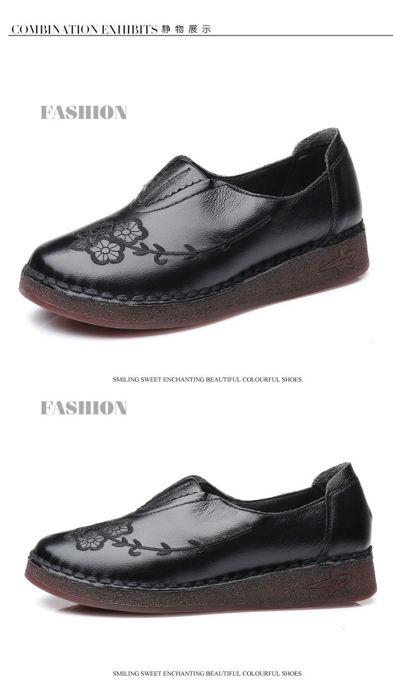 Женская обувь весенне-осеннего фасона с мягкой подошвой и мягкой поверхностью, удобная этническая женская обувь среднего и пожилого возраста, плоская подошва из натуральной кожи и сухожильная подошва для большой стопы.