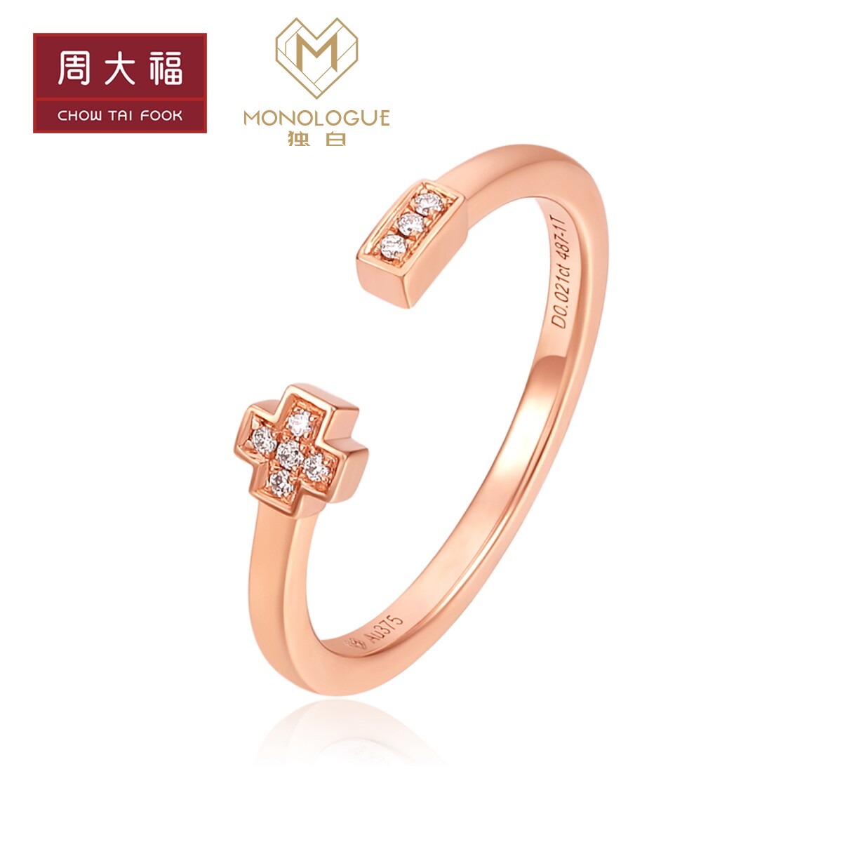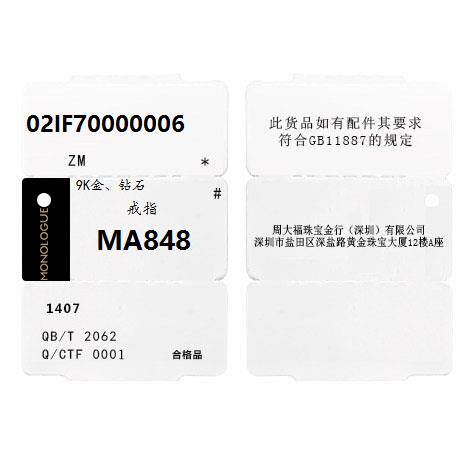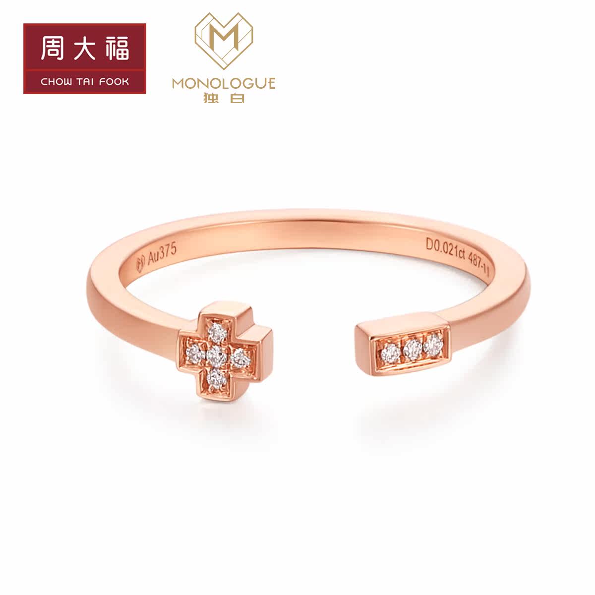 周大福 Монологический монологический микс серия моды 9K золотое бриллиантовое кольцо бриллиантовое кольцо MA848 Подарок