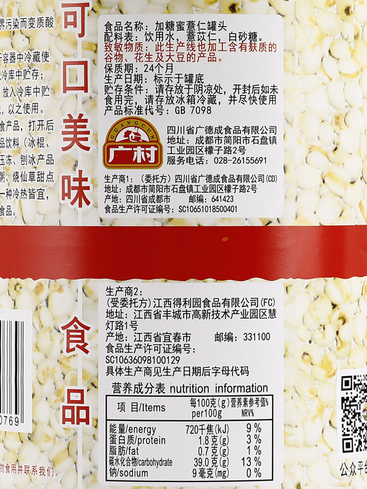 Гуанкун ячмень консервированный 920 г консервированный колики для семян риса ячменя кокосовой цепи магазин молочный чай ингредиент десерт