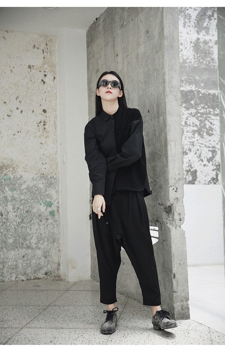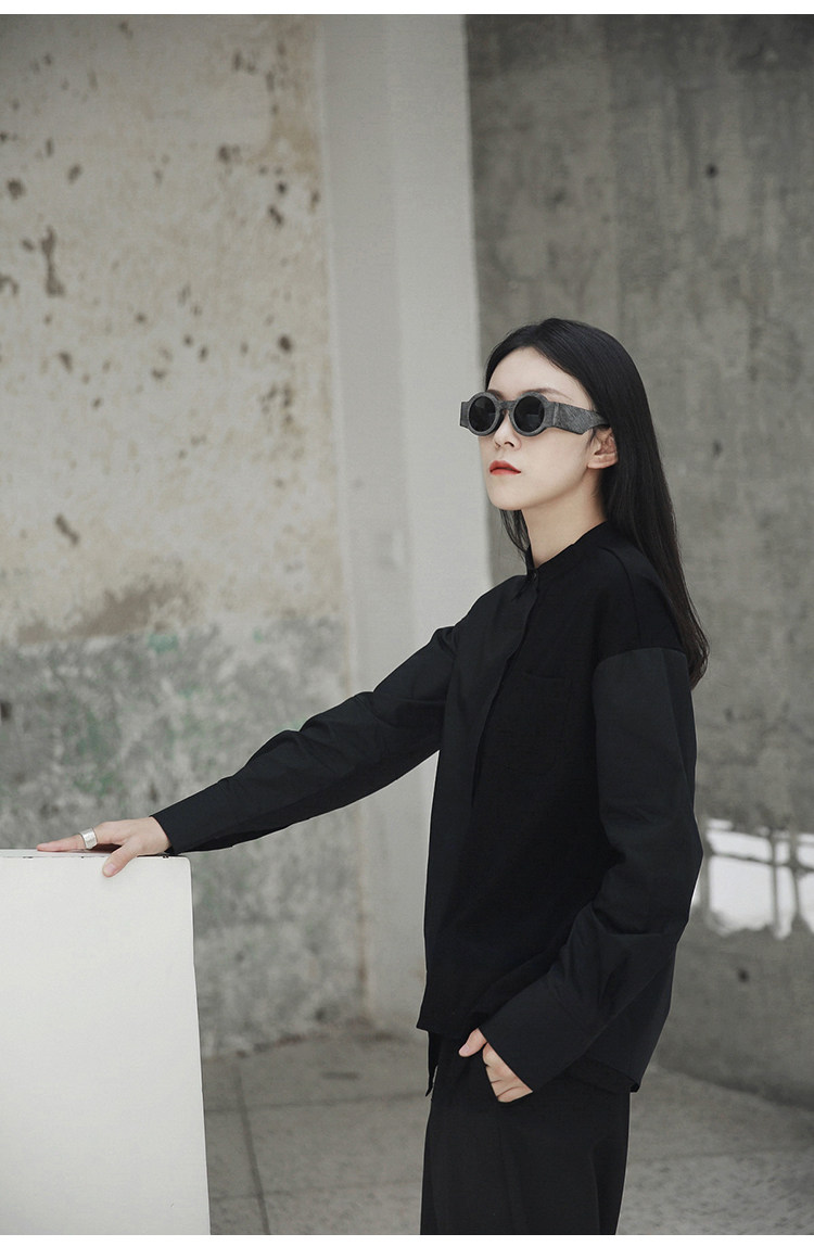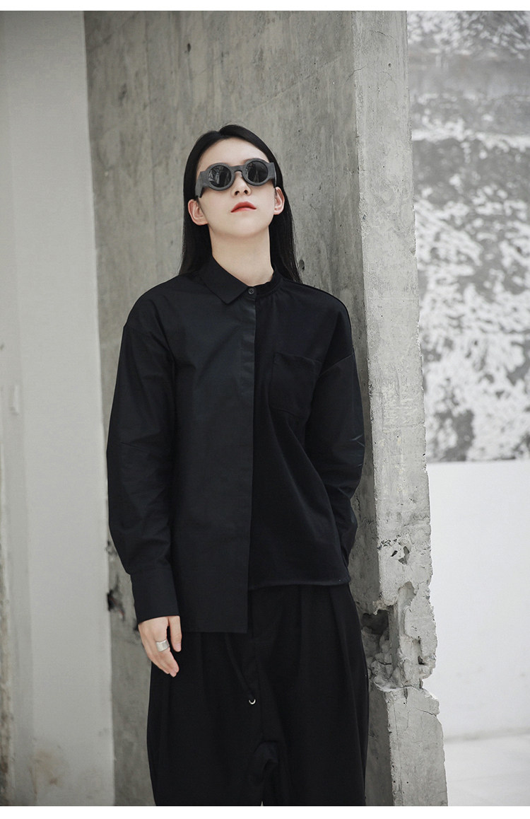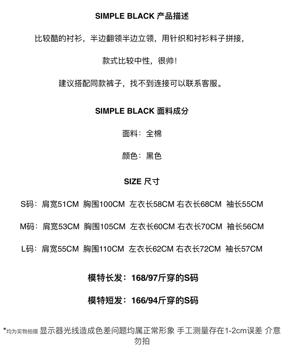 Простая черная осенняя и зима AW Diablo Spring и осень BF Нейтральная температура сшивания с длинной -прилив рубашки