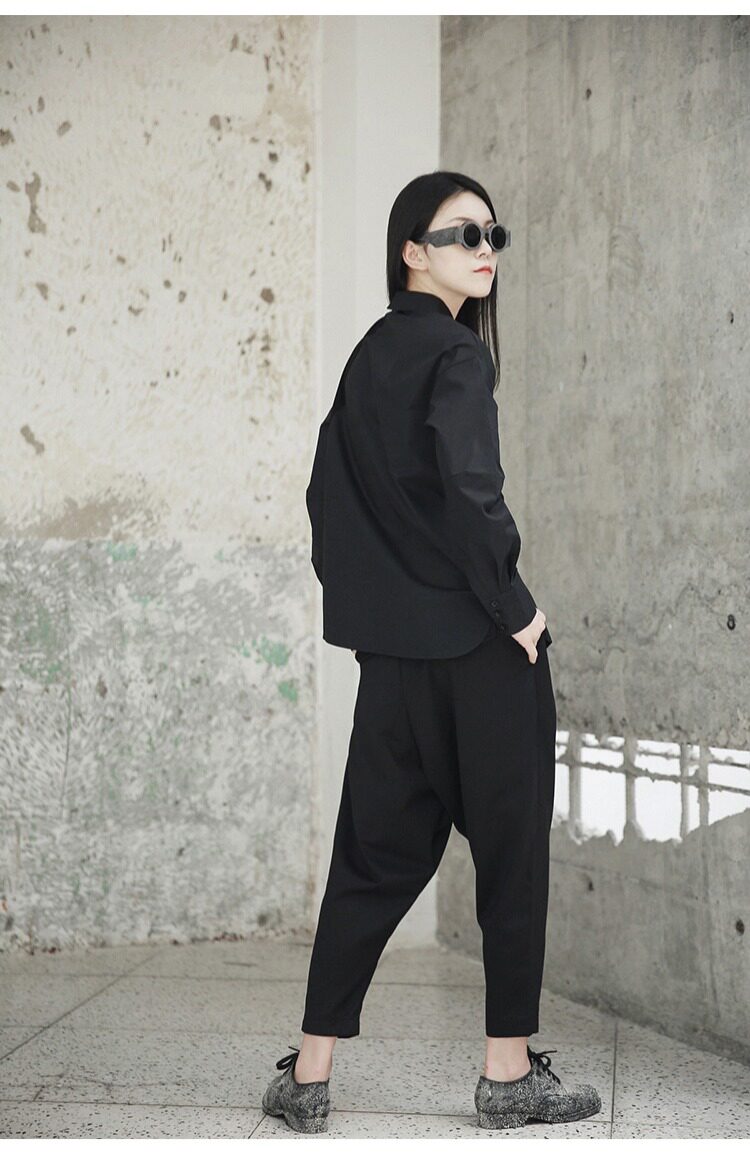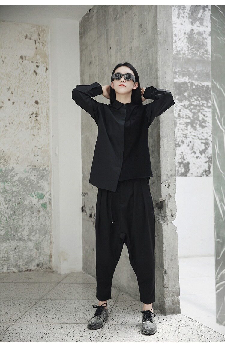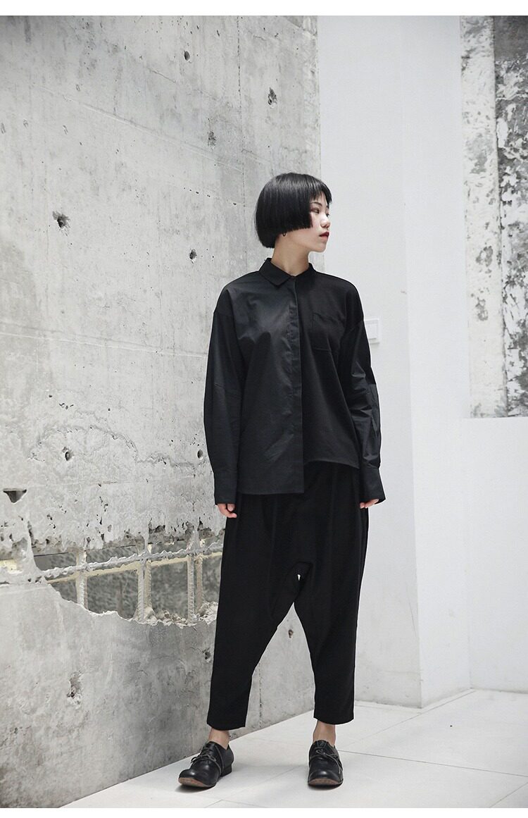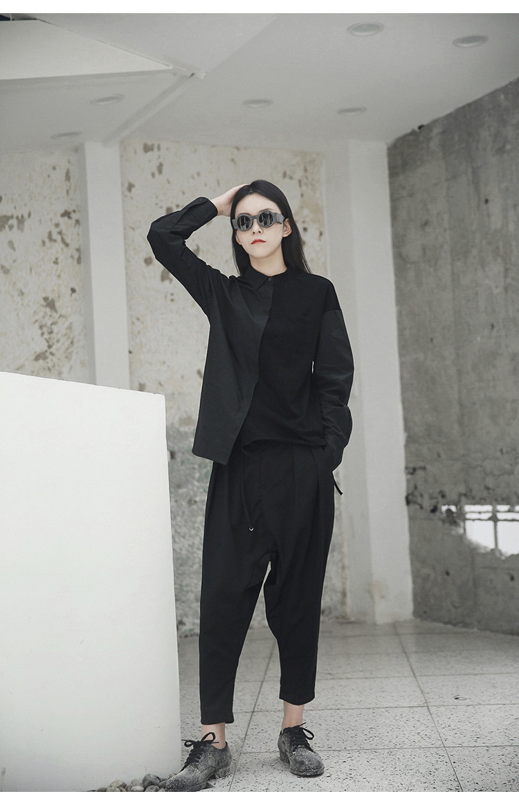 Простая черная осенняя и зима AW Diablo Spring и осень BF Нейтральная температура сшивания с длинной -прилив рубашки