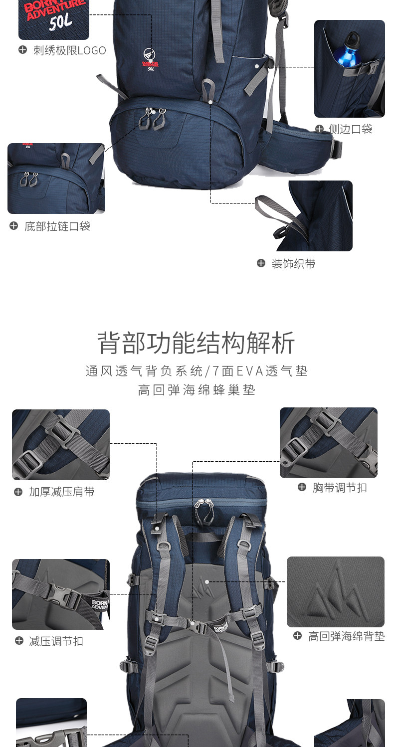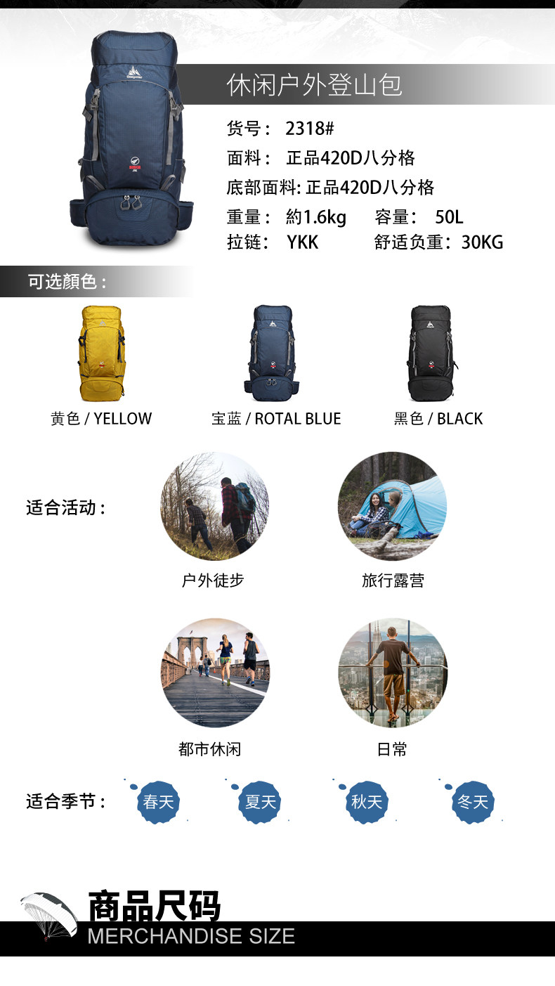 Рюкзак для скалозалания, вместительная и большая сумка для путешествий подходит для пеших прогулок подходит для мужчин и женщин