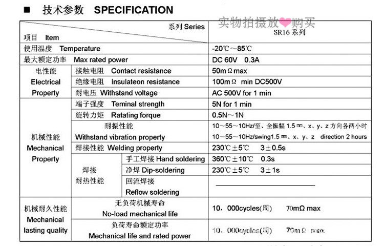 Весь диаметр выключателя пластиковой полосы:16 мм.Длина оси: 15 мм включает в себя зубы улитки.Рейтинг мощности: 0,3a 60 В постоянного тока, одинМеханизм45&Град;.Жизнь: 20 000 разПятно передачи: 2 ножа и 3 шестерни, 2 ножа и 4 шестерни, 1 нож и 5 шестерни, 1 нож и 6 шестерни, 1 нож и 8 шестерни.Если вам нужны другие спецификации, вы можете заказать, пожалуйста, подробно свяжитесь с обслуживанием клиентов, спасибо!