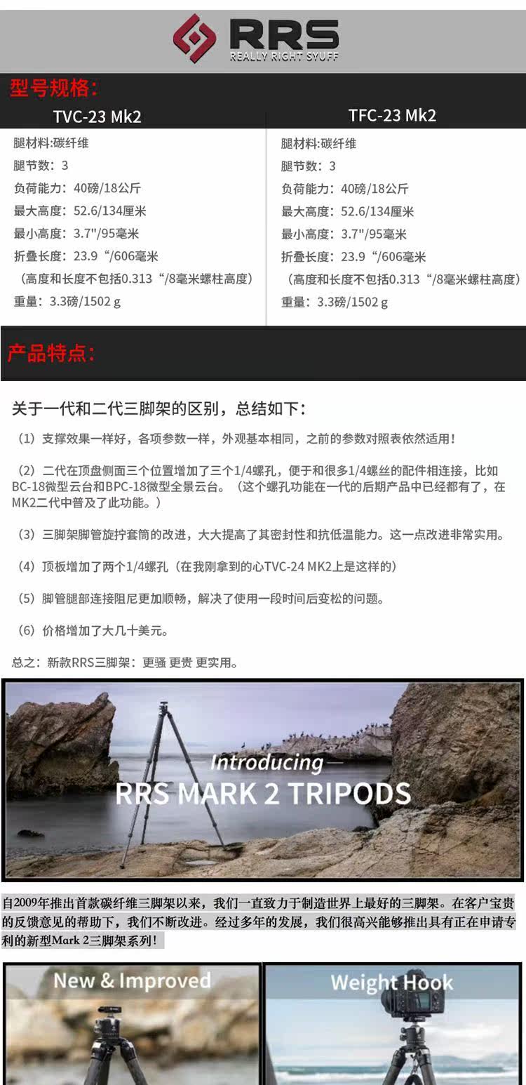 Новый американский RRS TVC-23 MK2 TFC-23 MK2 углеродного волокна второго поколения три штатива
