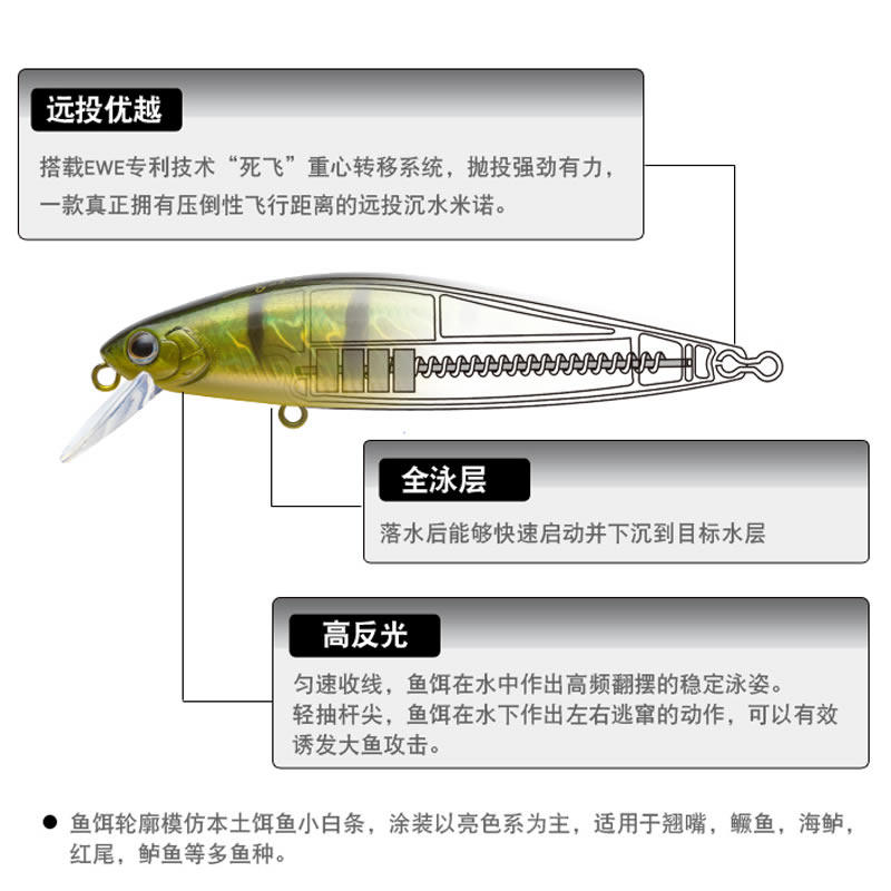 Meixia ewe Серебряное нож раковины Mi nuo mi nuo Flying Flying Flight Fake Fake Bait Bait приманка.