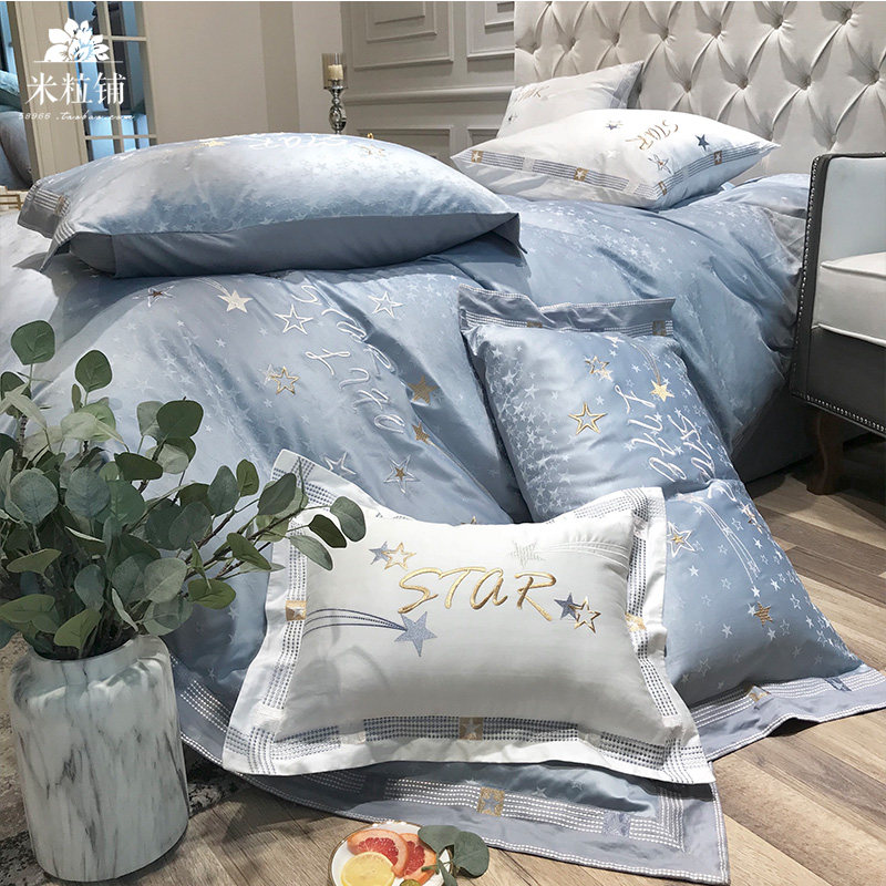Хлопковый комплект, пододеяльник, покрывало, простой и элегантный дизайн, скандинавский стиль, с вышивкой, 60 шт, 4 предмета