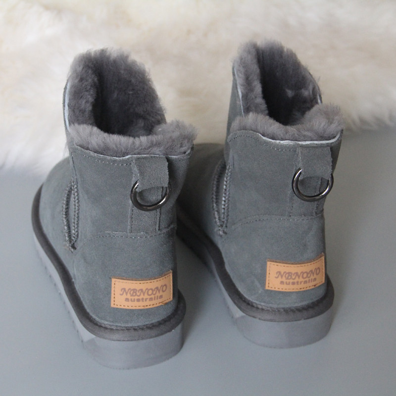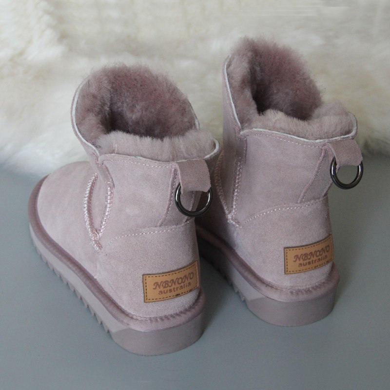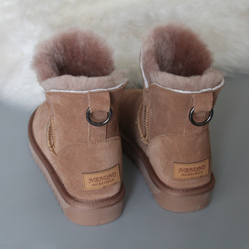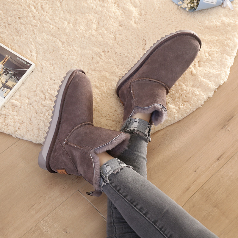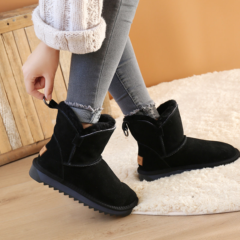 Утепленные зимние кожаные удерживающие тепло короткие сапоги, в корейском стиле