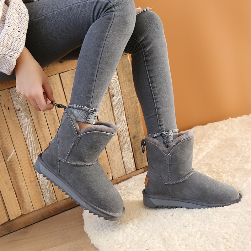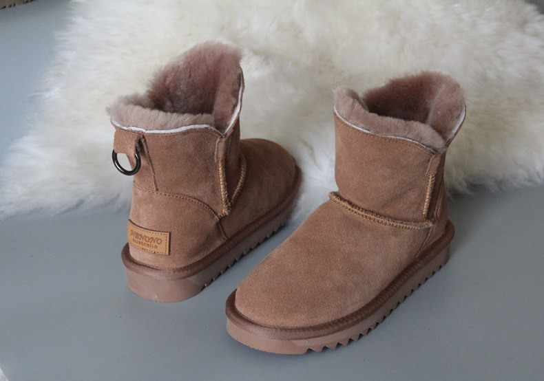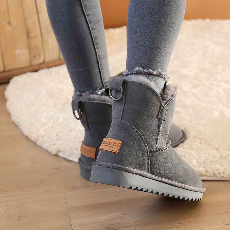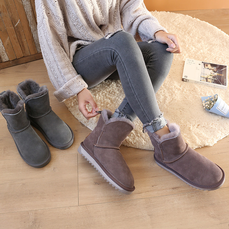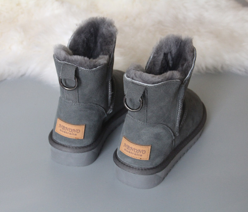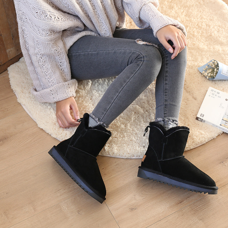 Утепленные зимние кожаные удерживающие тепло короткие сапоги, в корейском стиле