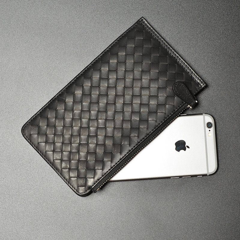 Картхолдер, бумажник, мужская плетеная ультратонкая сумка через плечо, из натуральной кожи