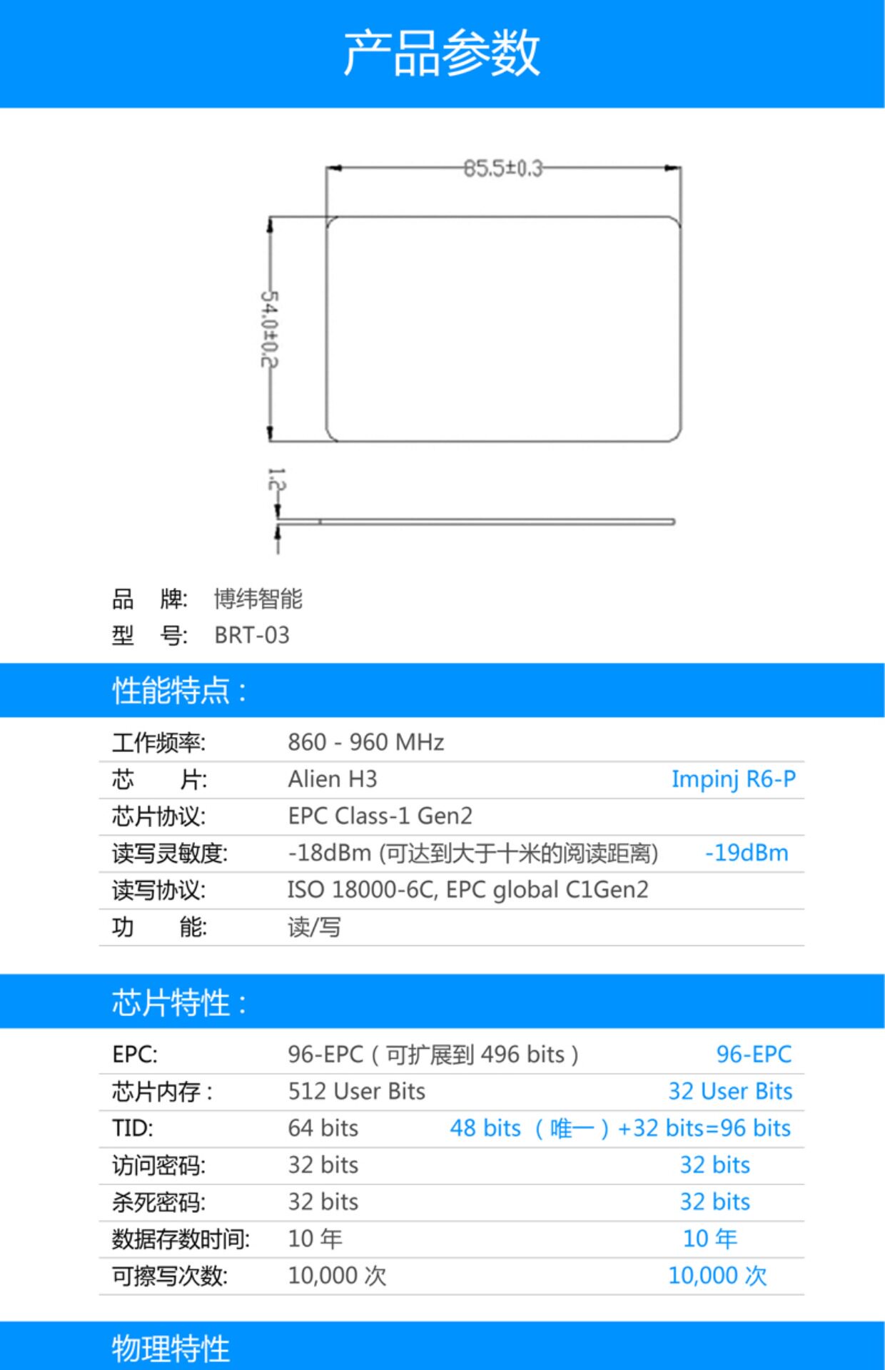 Электронная бирка белой карты RFID, электронная бирка Boyei Intelligent BRT-03, сверхвысокочастотная бирка белой карты RFID