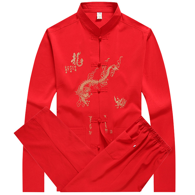 Комплект для пожилых людей, рубашка, летняя одежда, ханьфу, китайский стиль, осенний, для среднего возраста