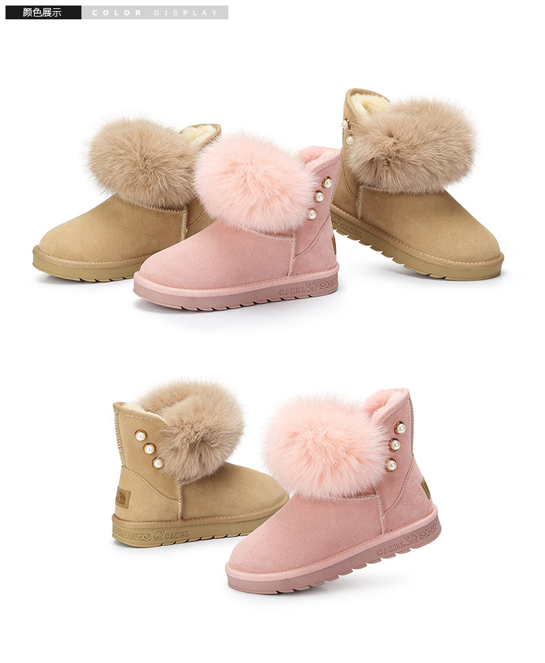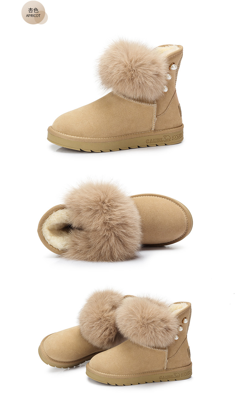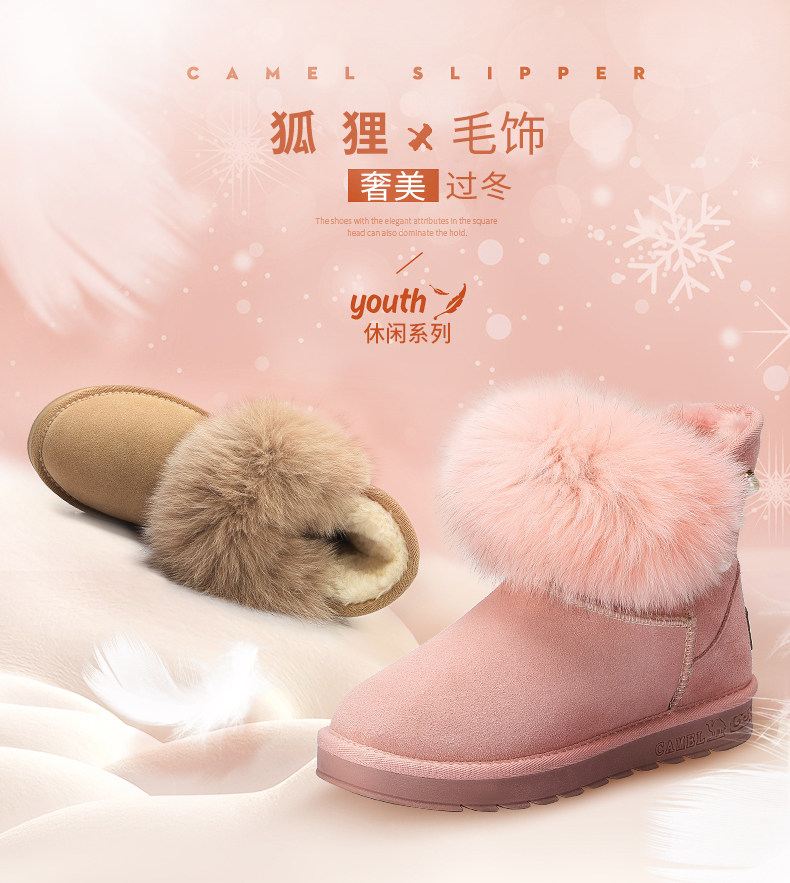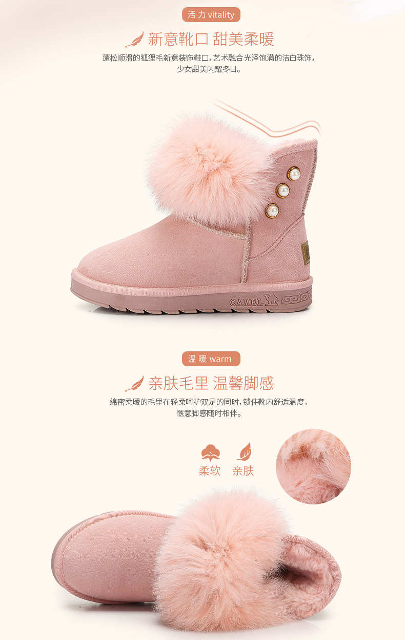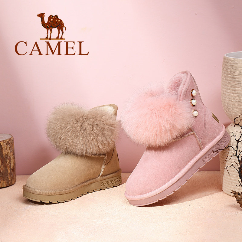 Верблюд женскую обувь ботинки дети в зимней новой утолщенной волосы обуви хлопковые туфли Fox Fox Fox, удобные теплые снежные ботинки