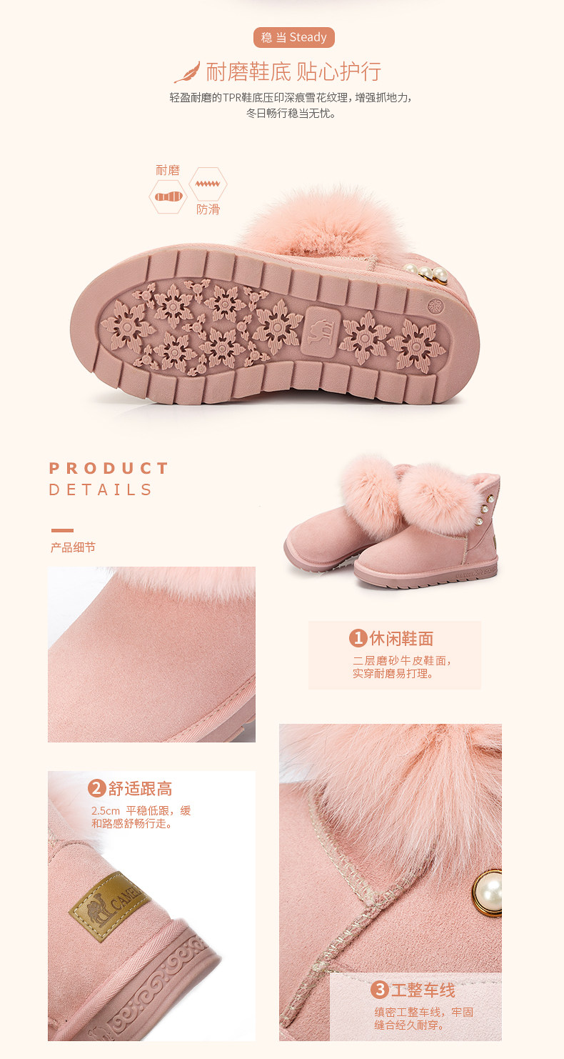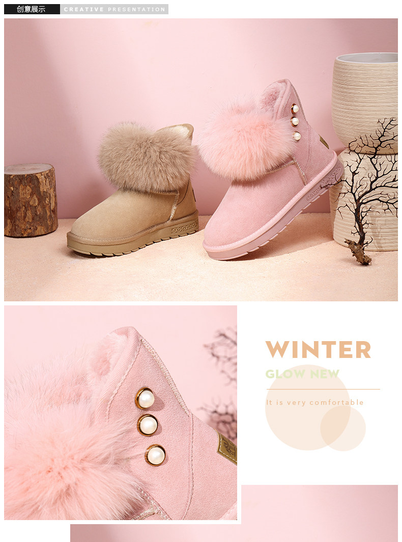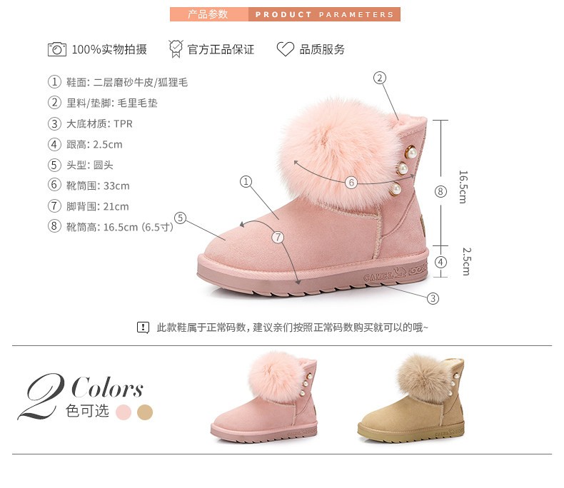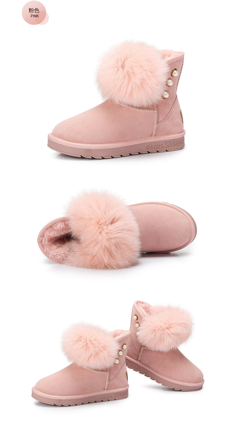Верблюд женскую обувь ботинки дети в зимней новой утолщенной волосы обуви хлопковые туфли Fox Fox Fox, удобные теплые снежные ботинки
