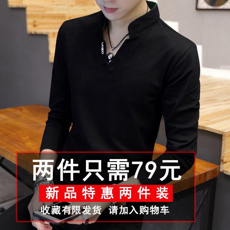 Весенний трендовый хлопковый лонгслив, базовая толстовка, в корейском стиле, V-образный вырез