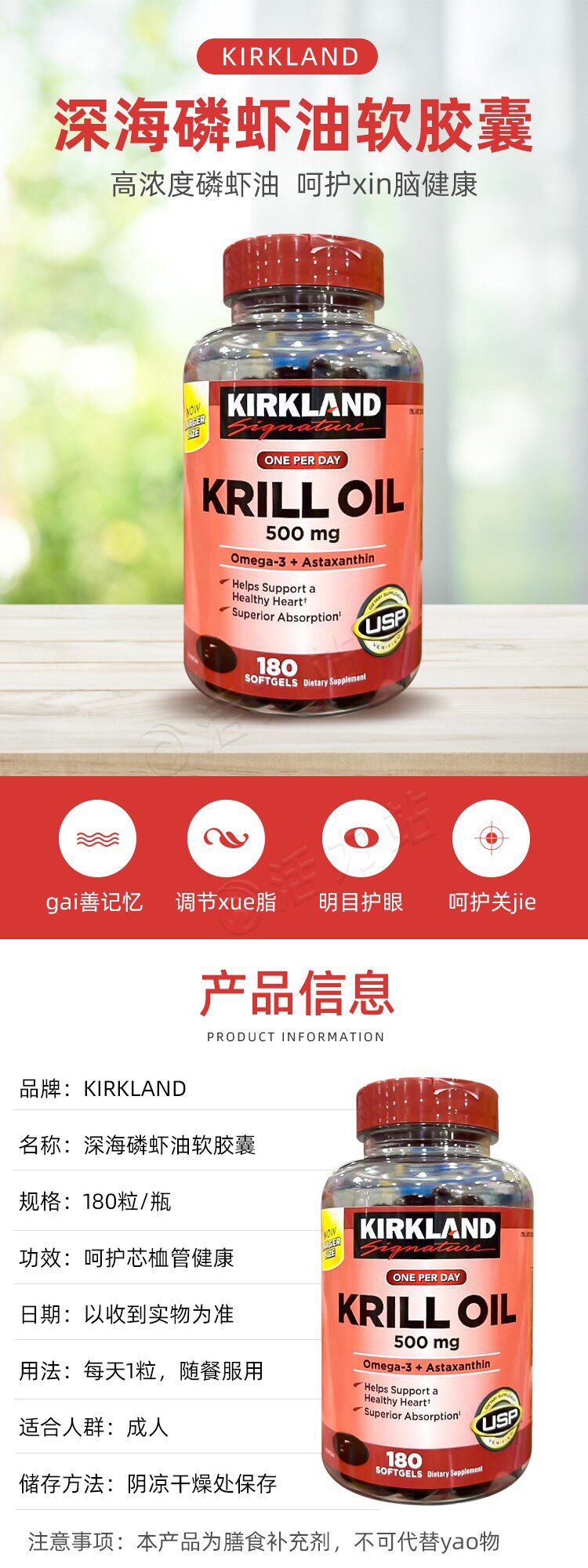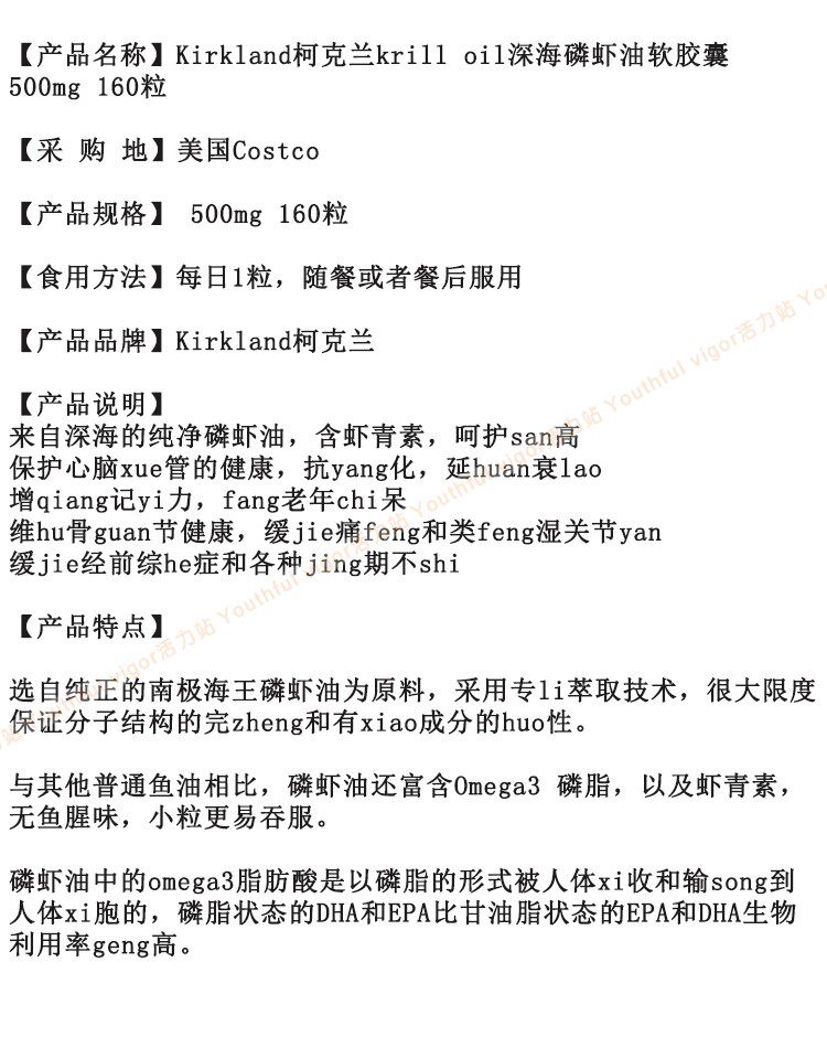 США прямая почтовая почта Киркленд Кирилл Масло Глубокое морское фосфатное масло мягкие капсулы 500 мг 180 капсул