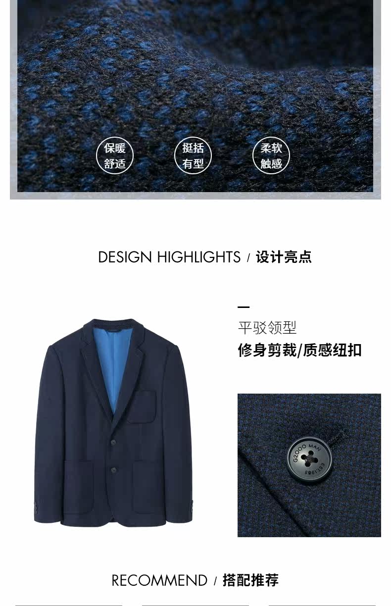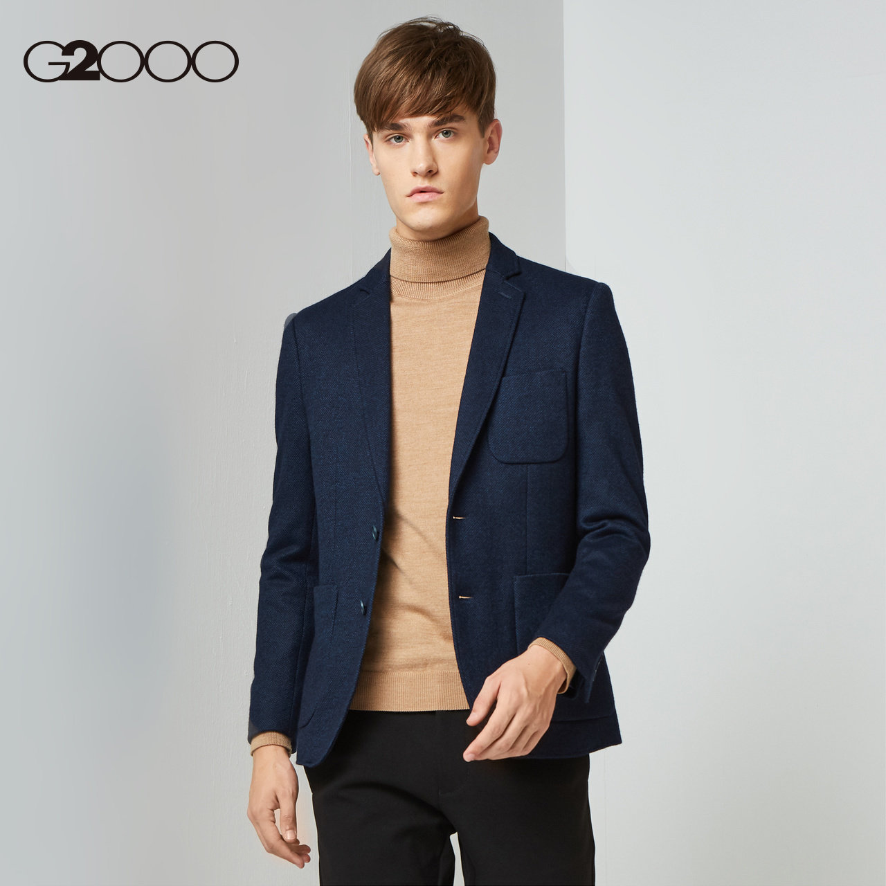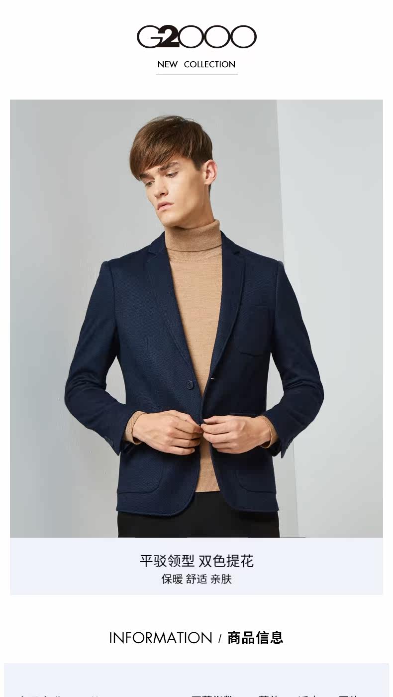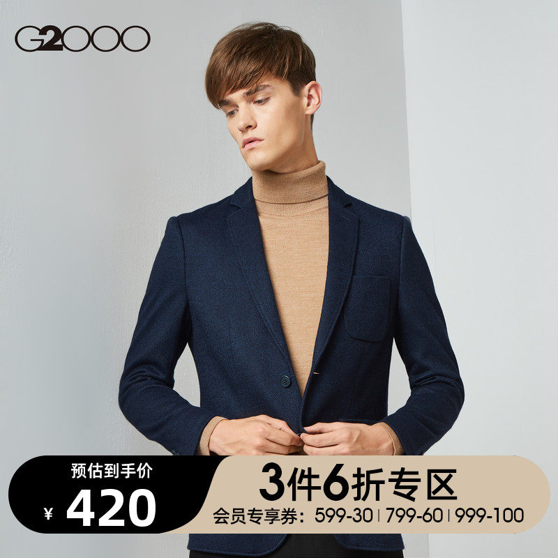 G2000 Темно-синий комфортный мягкий шерстяной костюм для отдыха, облегающий крой