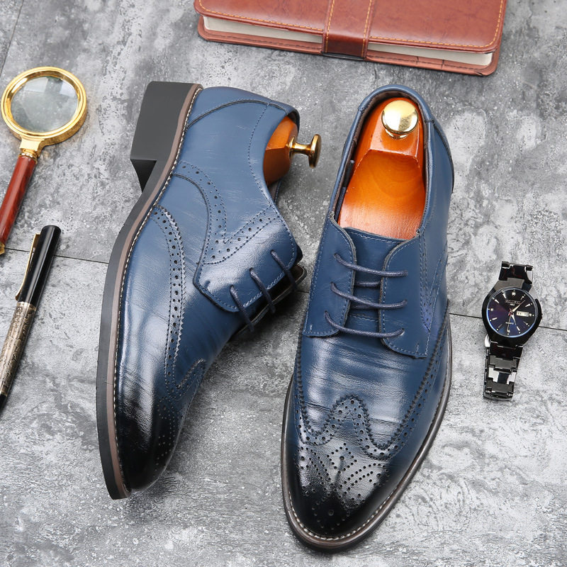Желтая синяя обувь для отдыха в английском стиле для кожаной обуви, осенняя