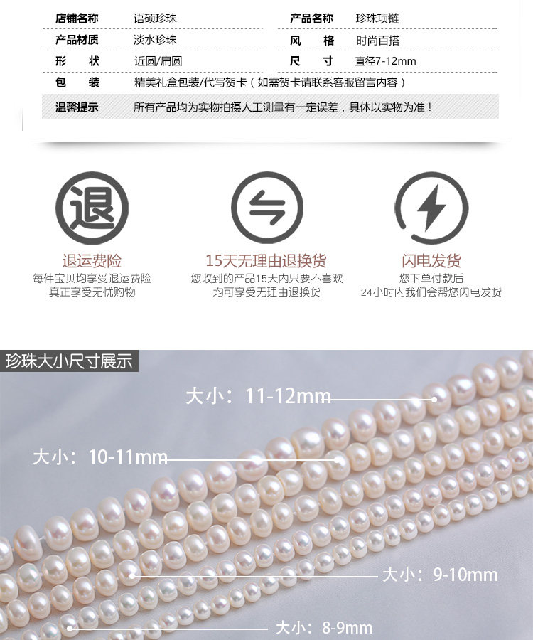 | Диаметр жемчужины: | 7-8mm, 8-9mm, 9-10mm, 10-11mm, 11-12mm |