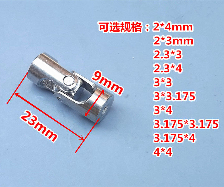 [Параметр Значение]:2*3 (представляет, что один конец - это отверстие 2 мм, а другой - 3 -миллиметровое отверстие. Вы можете соединить валы 2 мм и 3 мм вместе)