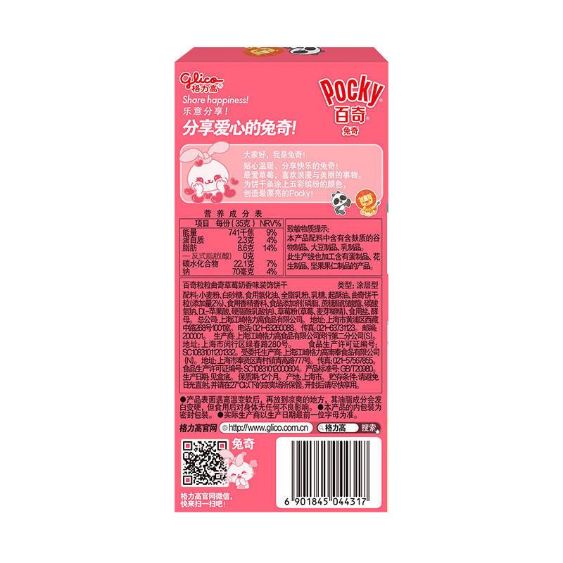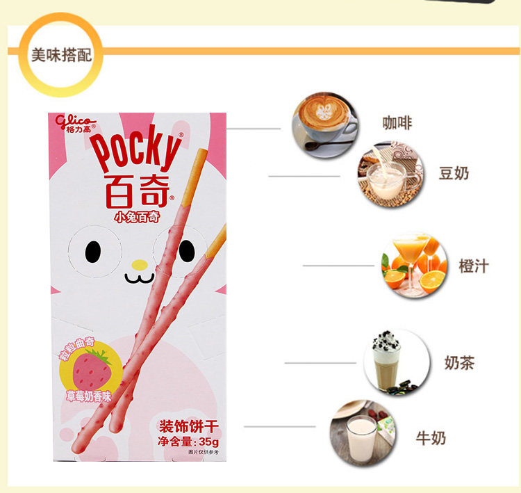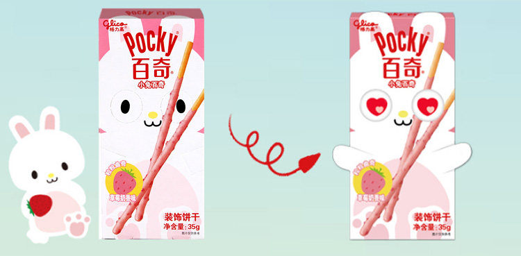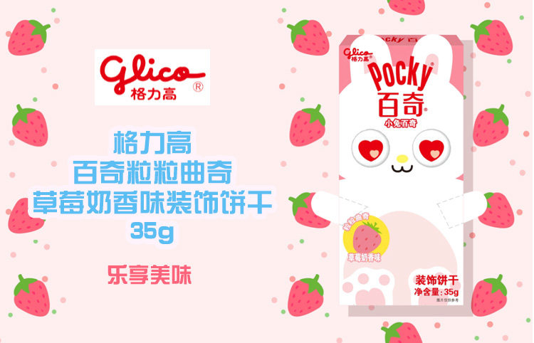 Печенье Glico Bunny Pocky с украшением со вкусом клубники и молока 35г/коробка