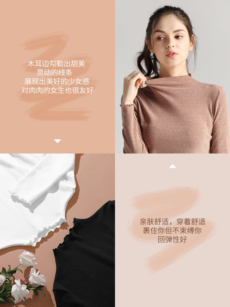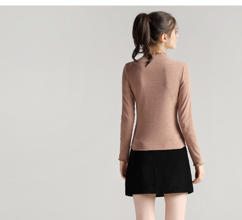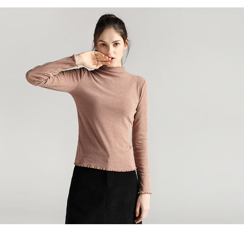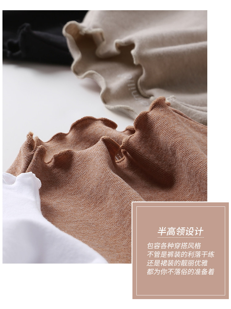 艾米恋 Базовый приятный телу весенний черный лонгслив, высокий воротник, 2021 года