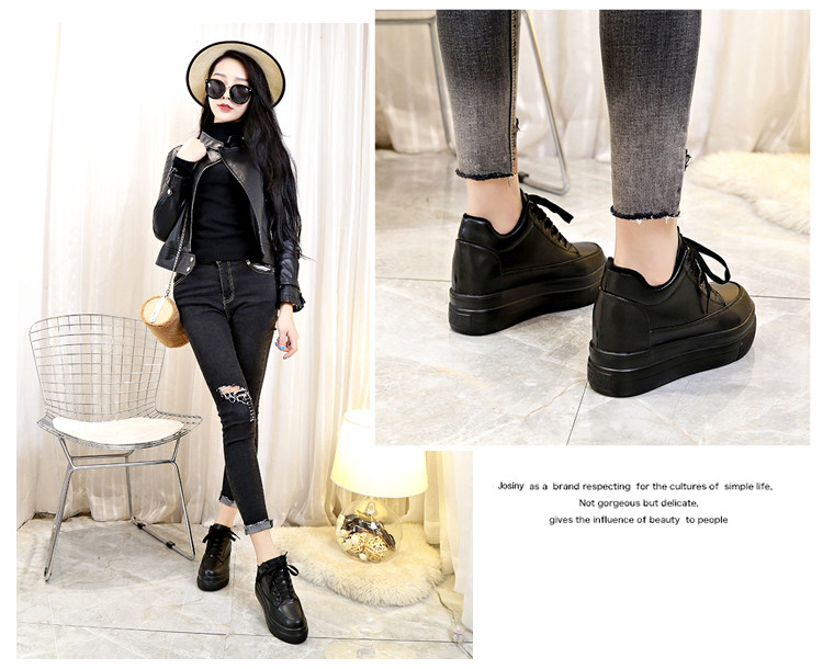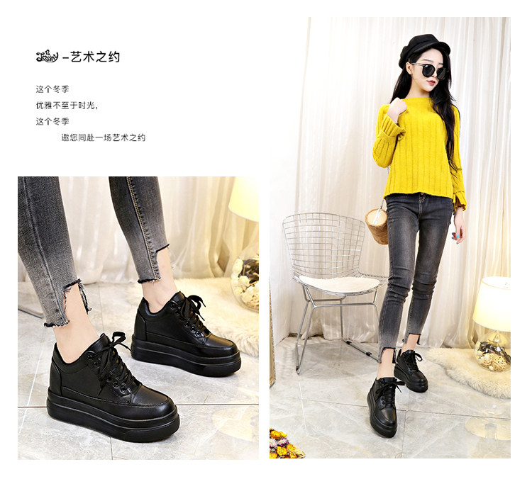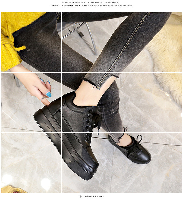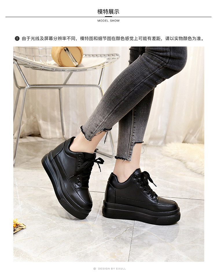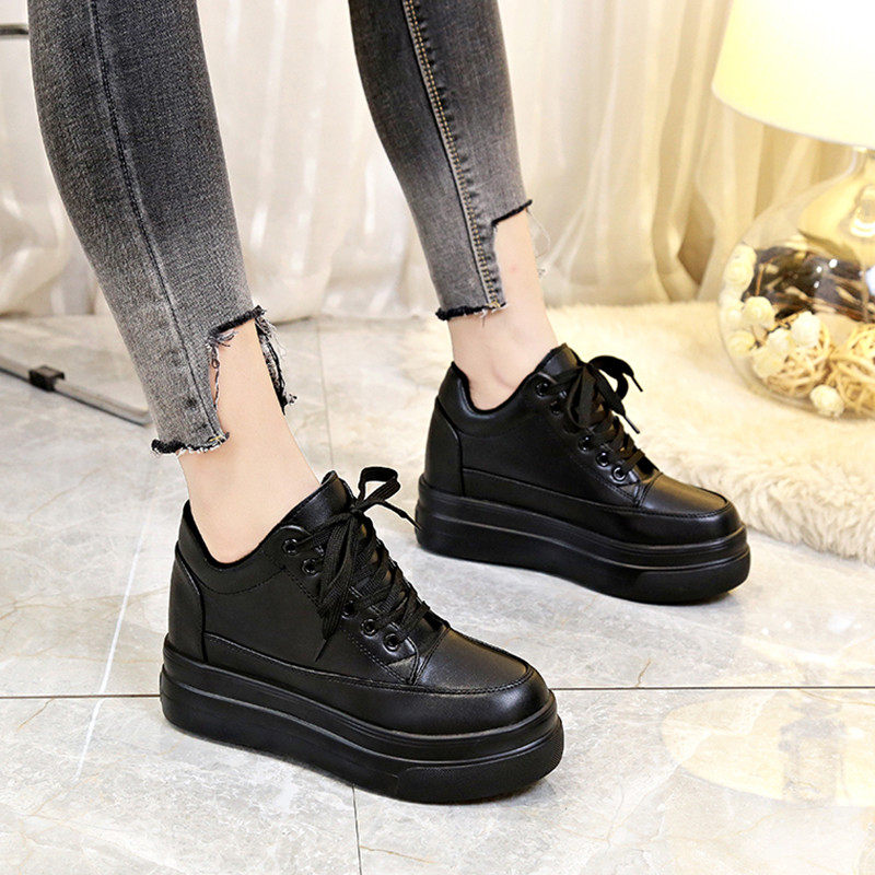 Высокая черная демисезонная обувь для кожаной обуви, сетчатые универсальные кроссовки, 7см, 2019, популярно в интернете, в корейском стиле