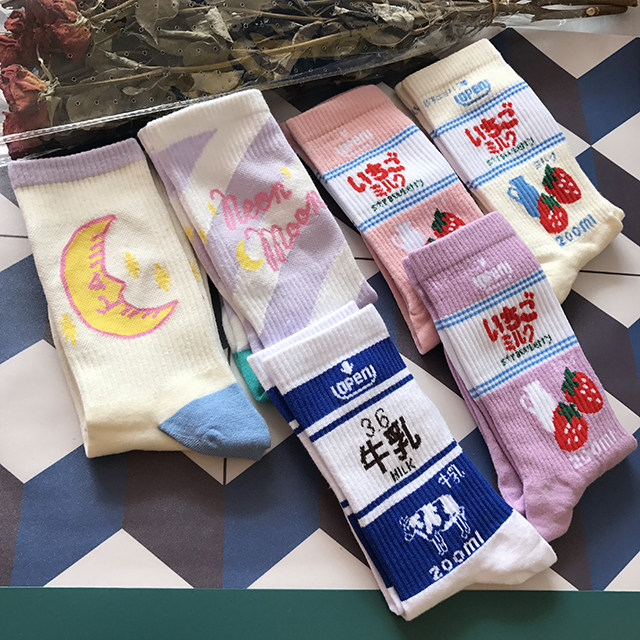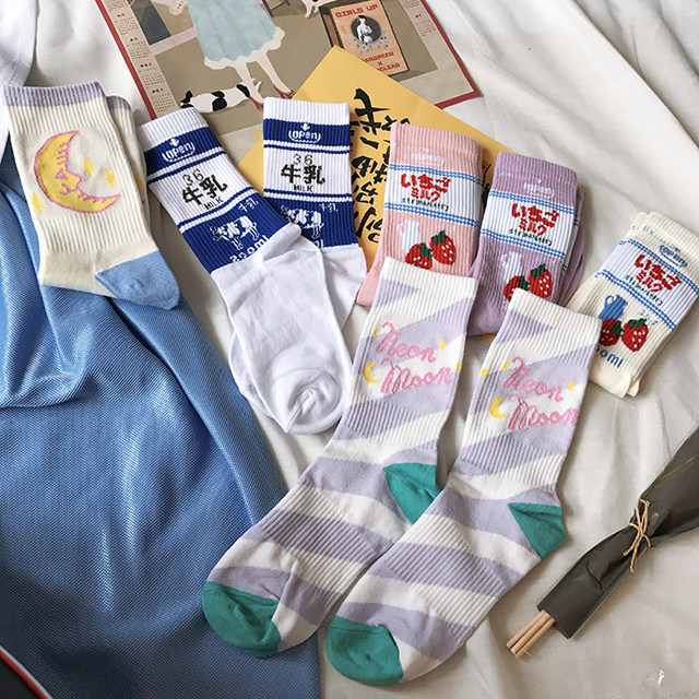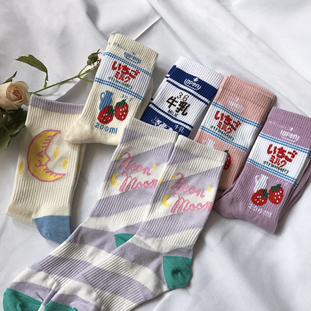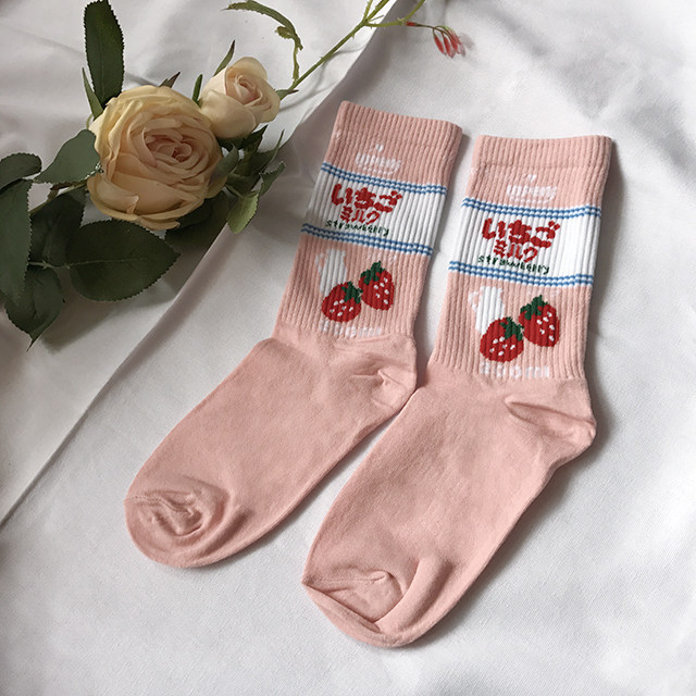 Базовая клубника для школьников и студентов, длинные японские носки, длина миди