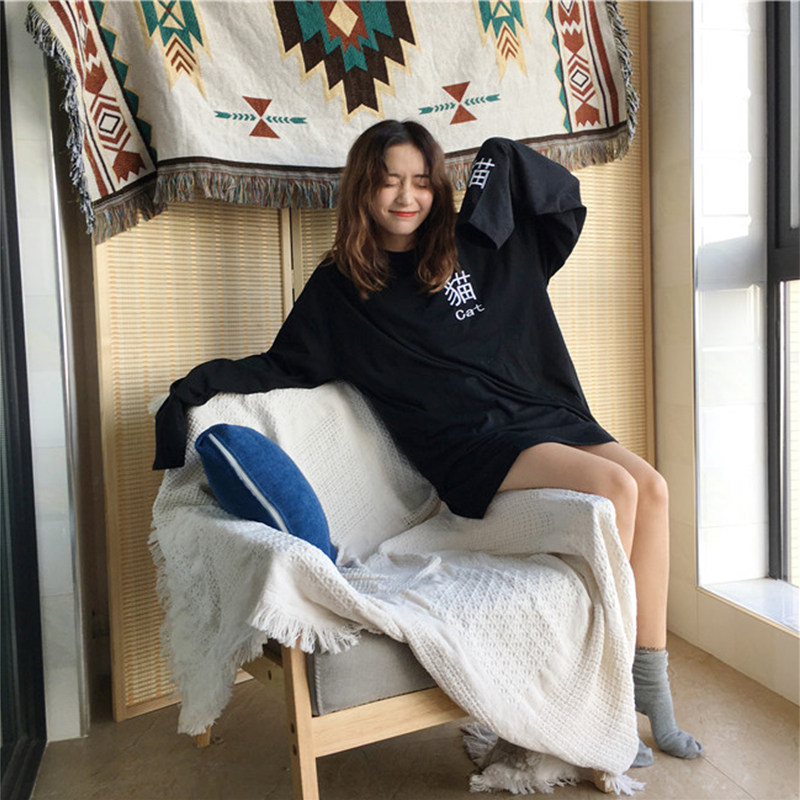 Осенний длинный лонгслив, осенняя футболка для школьников, в корейском стиле, средней длины