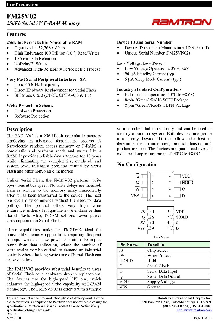 FM25V02/05/01/10-G FM24V02/01/05/10-G
