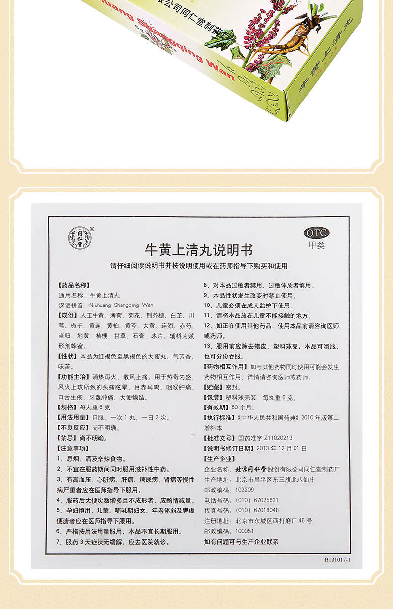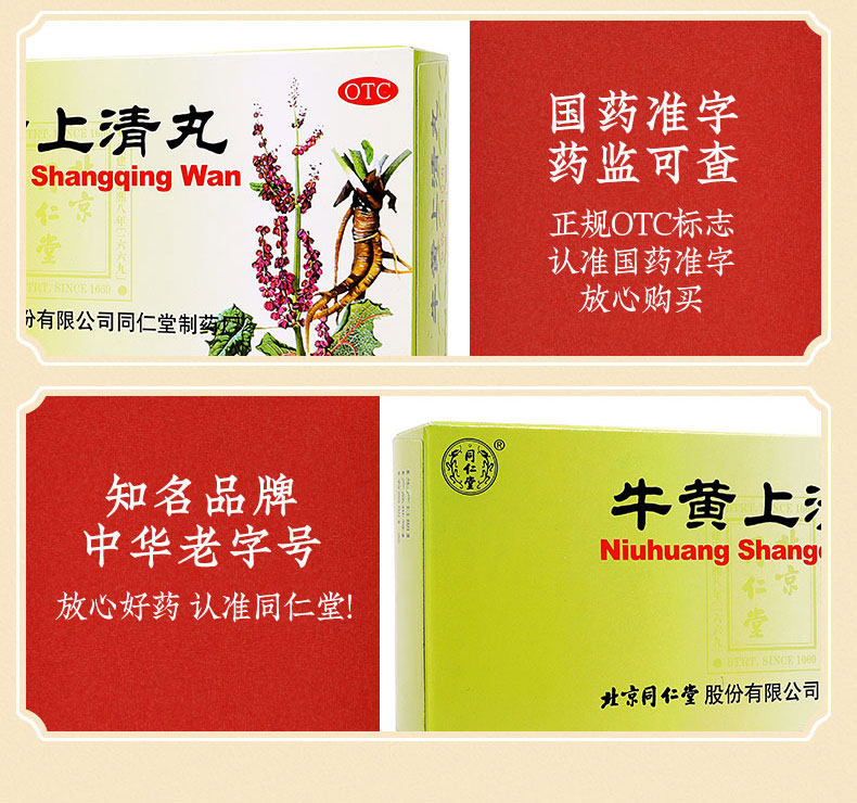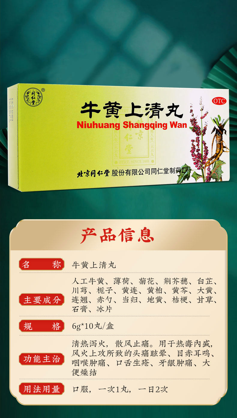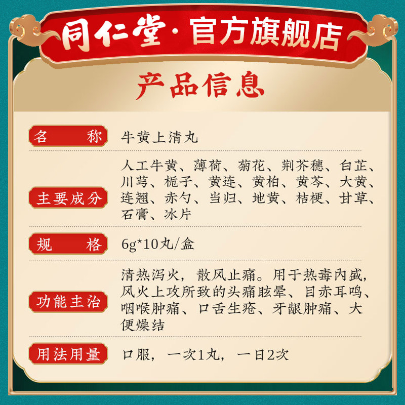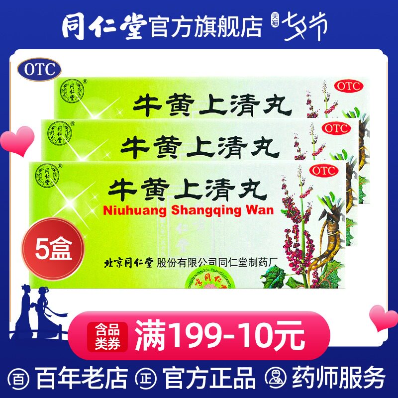 5 коробок] Tongrentang niuhuangshang Таблетки 10 таблетки горло, отек и боль в резинках, язык, шум в ушах, шума в ушах, чистое жар и порох