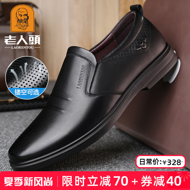 Мужские дышащие летние туфли для кожаной обуви, обувь для отдыха, для мужчины среднего возраста, из натуральной кожи, мягкая подошва