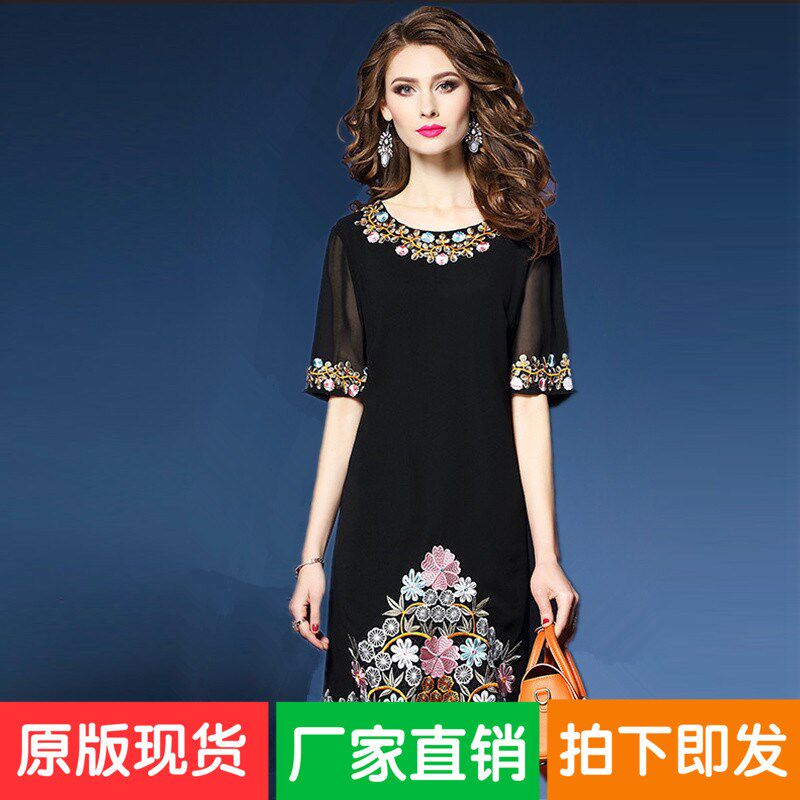 Летняя одежда, черное шифоновое платье, юбка, 2018, в цветочек, яркий броский стиль, по фигуре