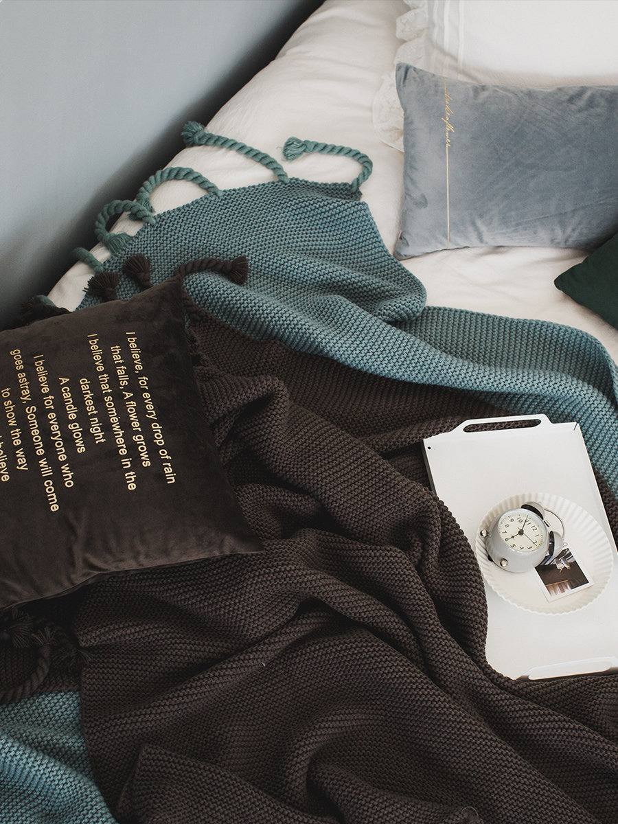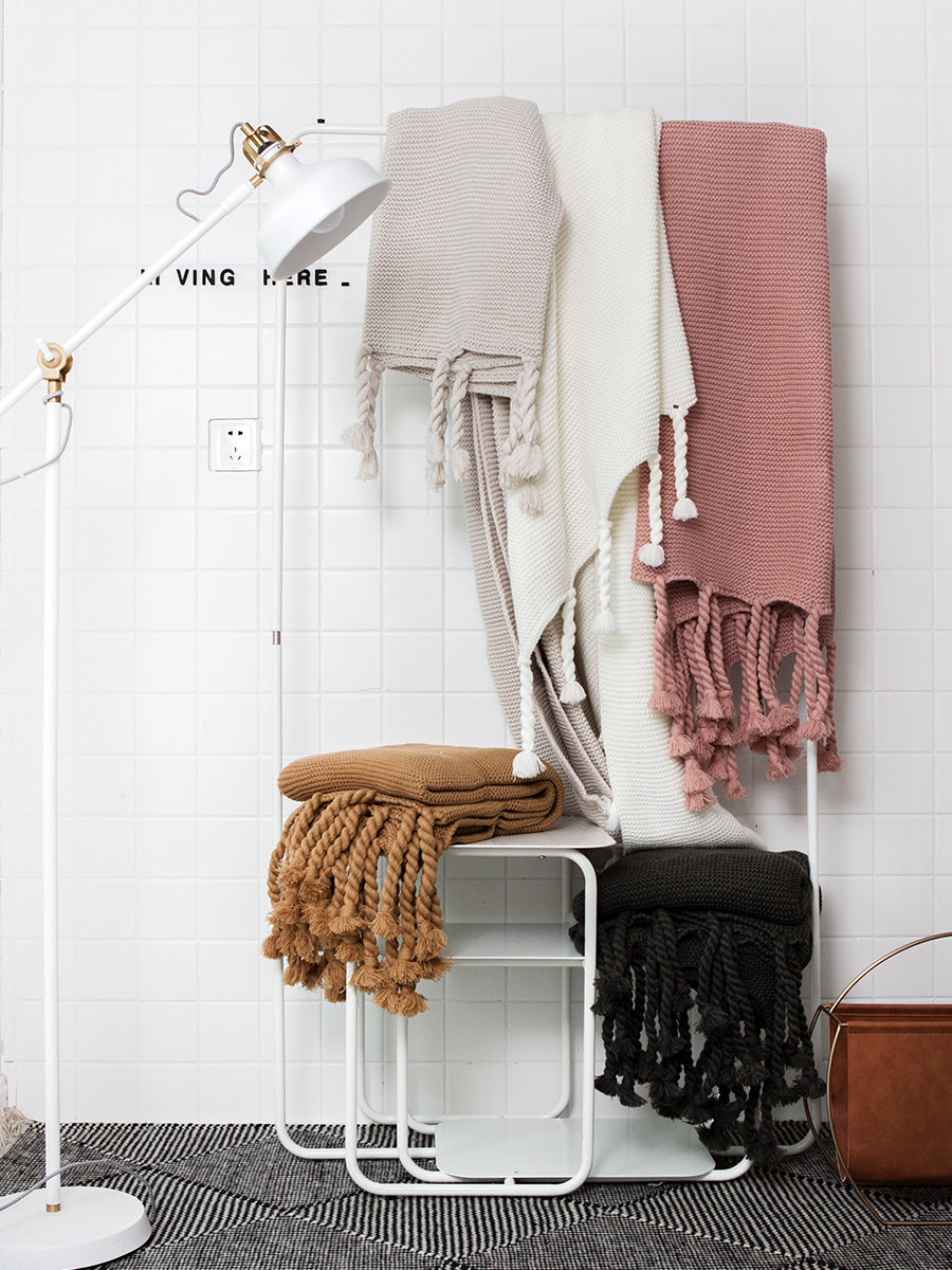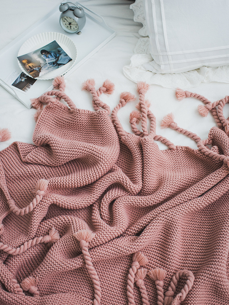 Ins Nordic Morandi цветное вязаное большое одеяло, мягкое диванное одеяло с кисточками, офисное повседневное одеяло для сна
