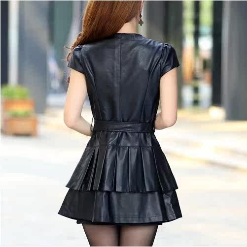 Демисезонная полиуретановая куртка, юбка в складку, платье без рукавов, 2018, короткий рукав, с рукавом, большой размер