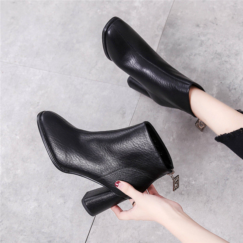 Martens, бежевые короткие сапоги, демисезонные ботинки, универсальные туфли на высоком каблуке, 2018
