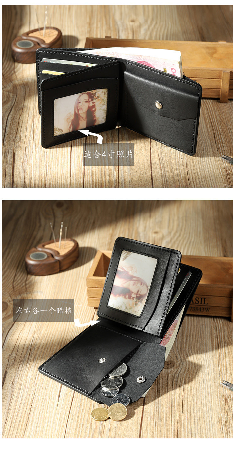Бумажник, ретро короткий кожаный кошелек для водительских прав, из натуральной кожи