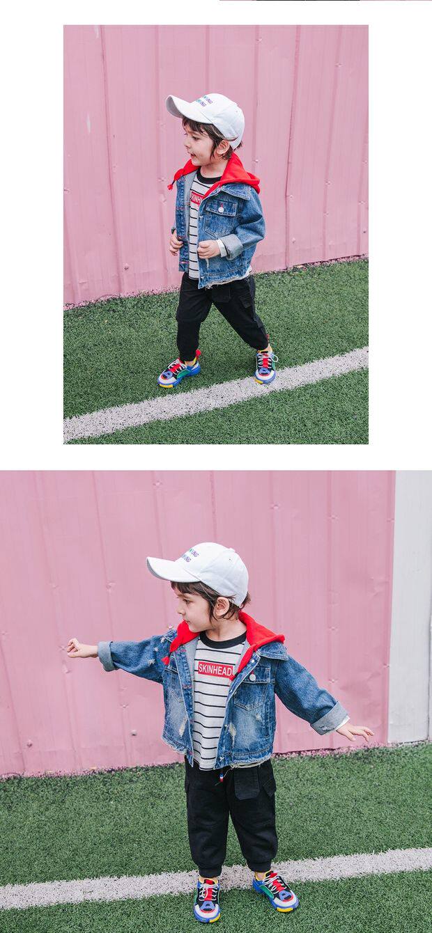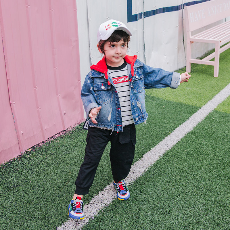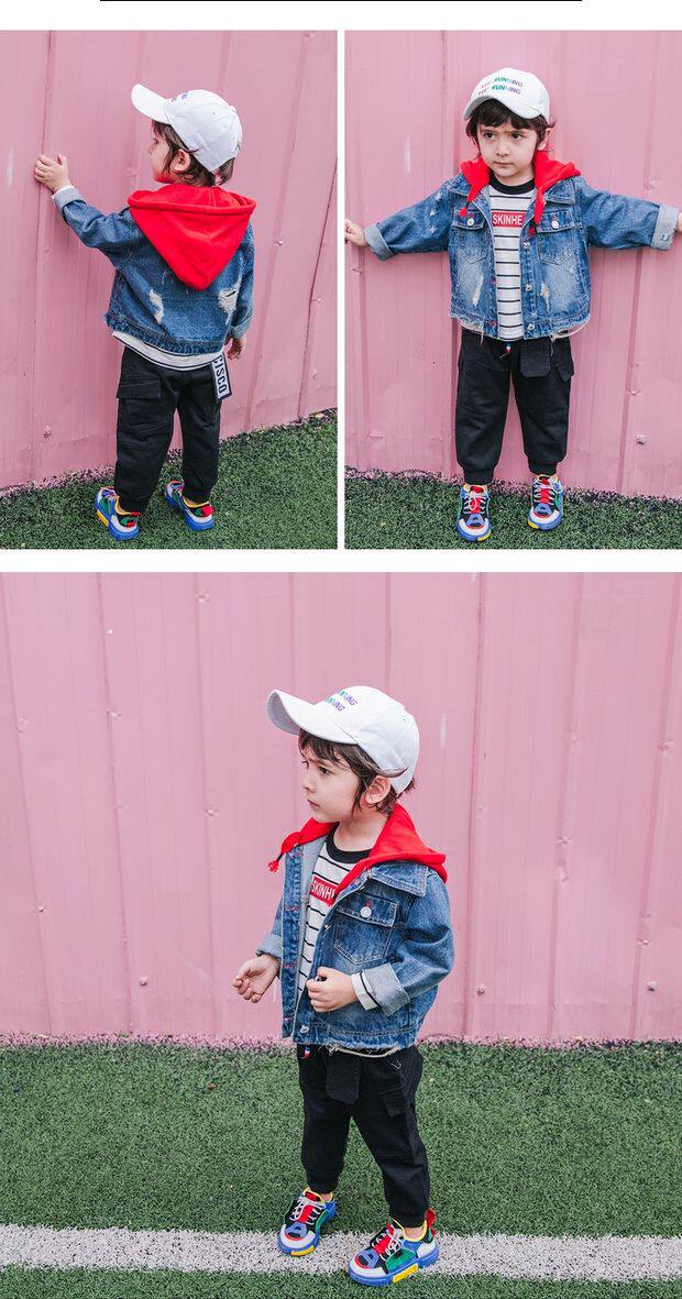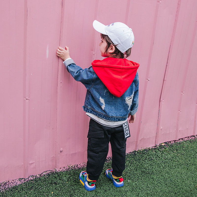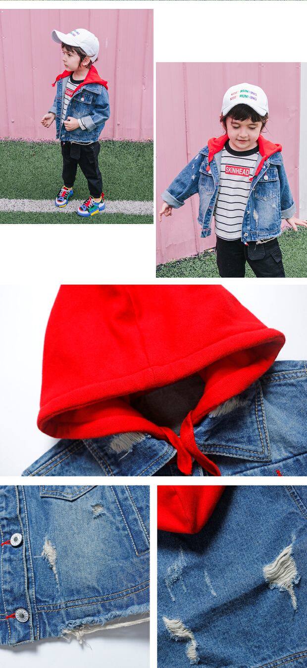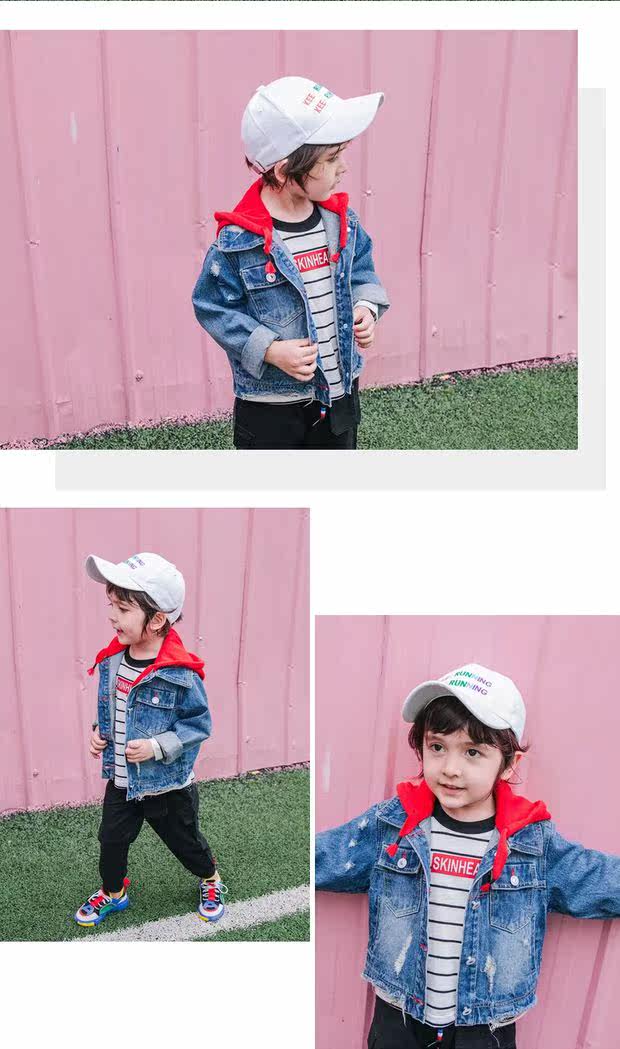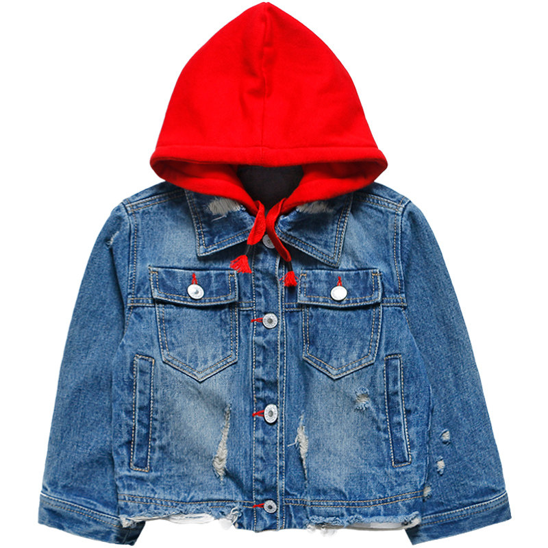 Джинсовая осенняя детская куртка для мальчиков с капюшоном, джинсовый кардиган для отдыха, 2019, в корейском стиле