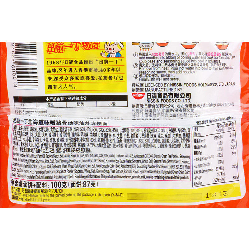 Перед Гонконгом один динг Хоккайдо Мисо Свиная костяная суп вкуса 100 г/сумка