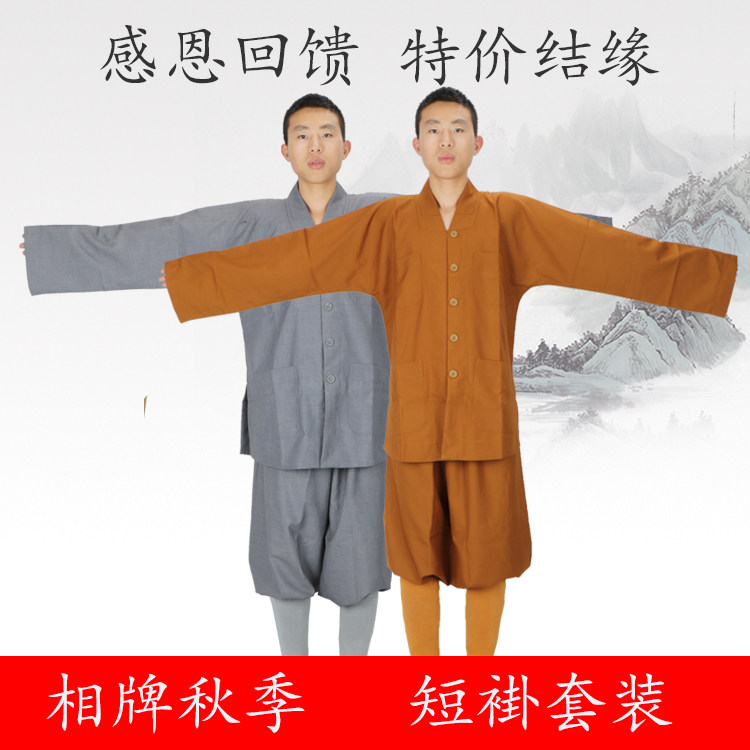 Карты одежды для монаха осенью и зимним шелковым светом хлопковое хлопок короткое платье подходит для мужчин и женщин, монахов, монахов, монахов, монахов, пуговиц, пуговиц