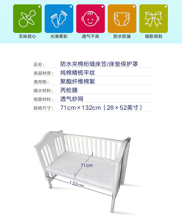 Дышащий водонепроницаемый стеганый детский защитный матрас, простыня, 70x